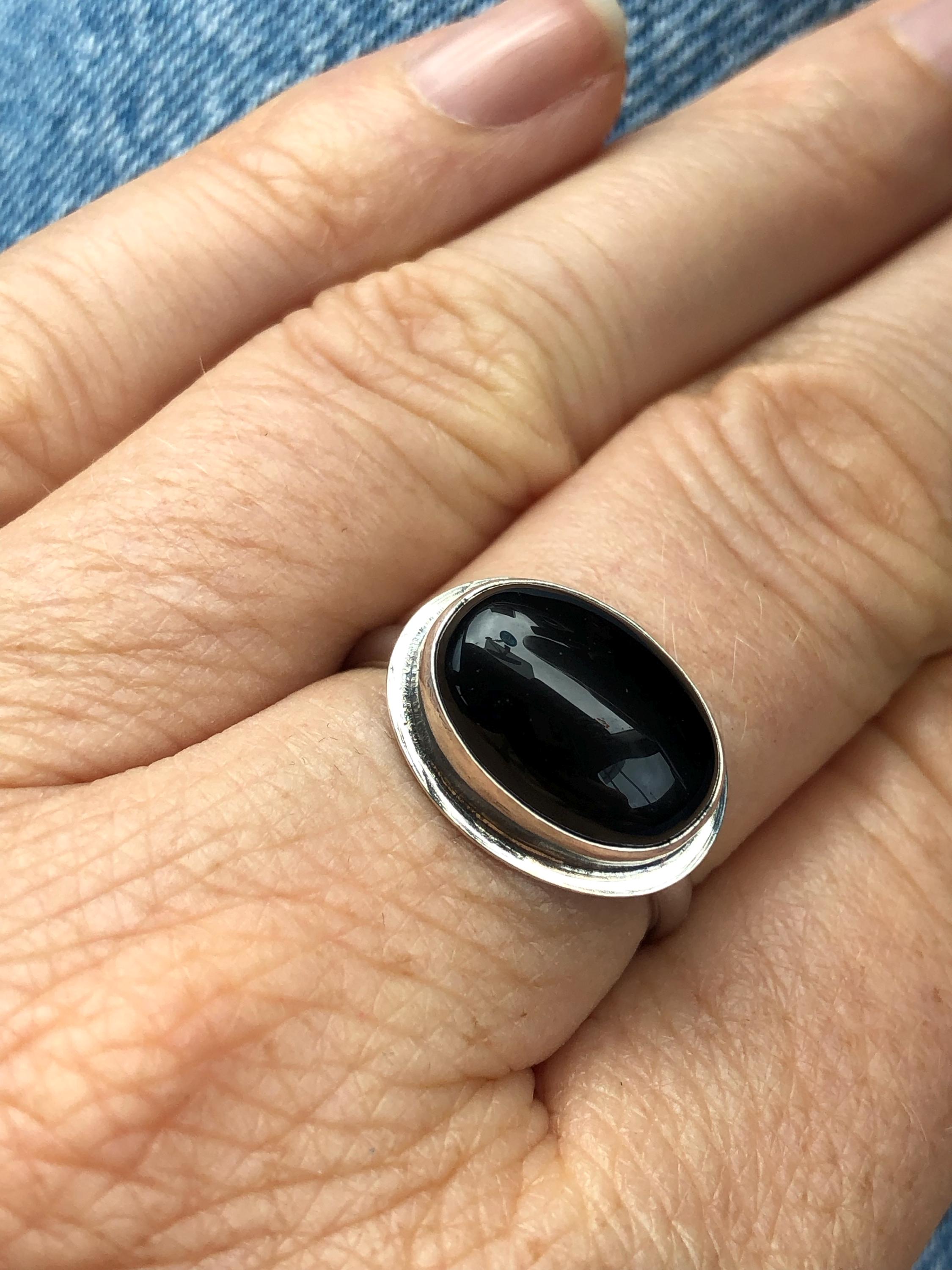 This East-West Oval Ring is simply perfect. The 10X14mm Black Onyx rests perfectly in this east-west oval configuration. Simple and minimal with just an edge of .925 Sterling Silver. Wear this Black Onyx Statement Ring alone or on a handful of rings. All traditional Silversmithing is done in my Baltimore MD studio.