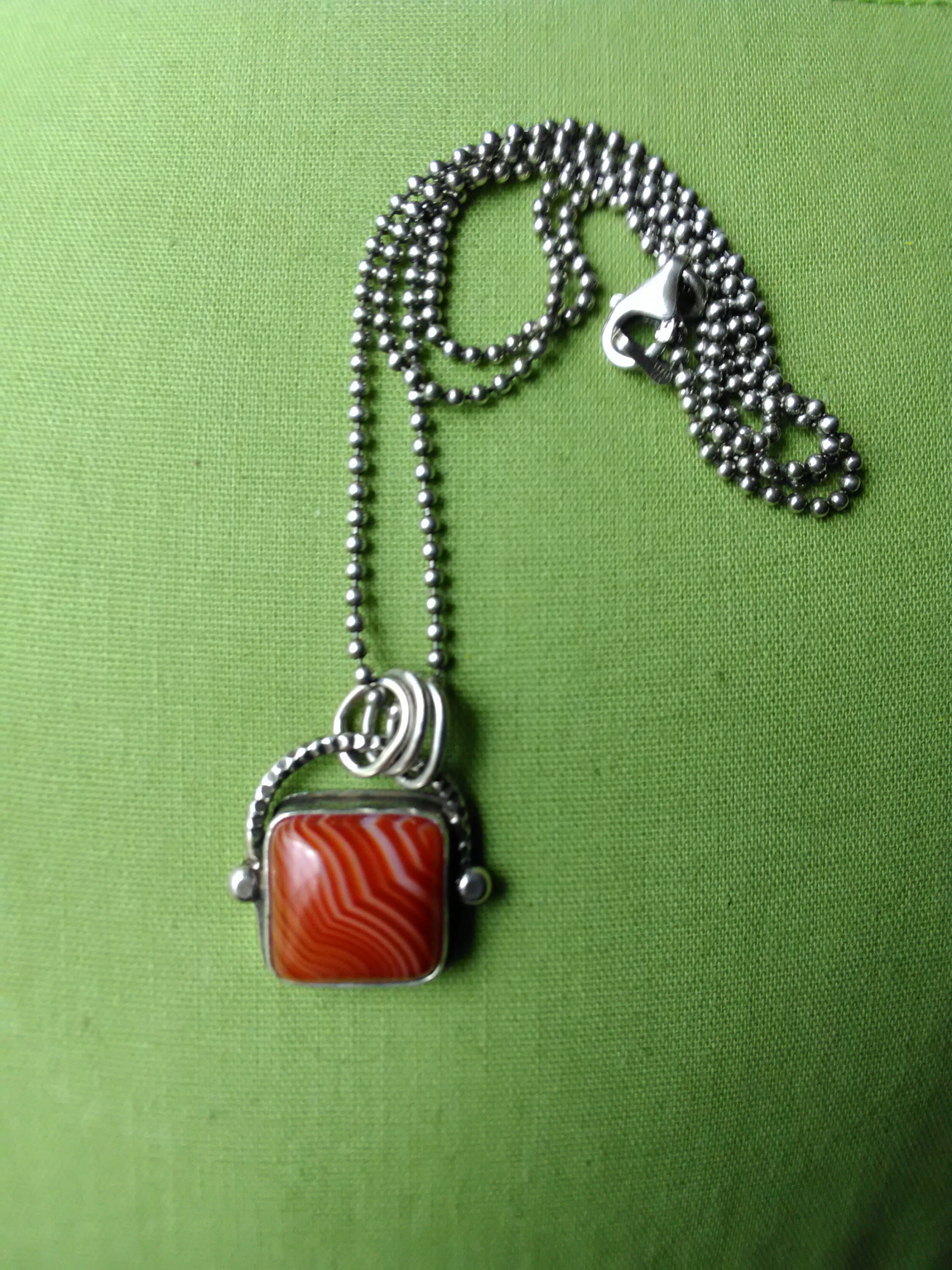 The optional chain is .925 Sterling silver, oxidized and sanded soft and buttery. 16-18 inch chain is balanced with the piece, meaning hefty, 2.3 mm heavy cable chain, with a 2-inch sterling silver extender chain.