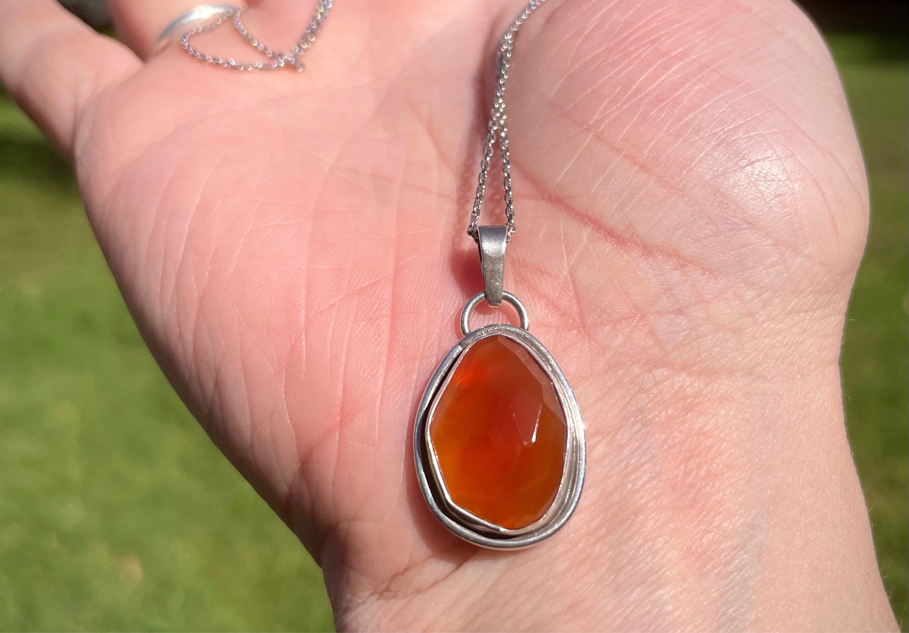 This is a choose your own stone listing - choose from these stunning, individual Carnelian cabochons in the drop-down below. Your choice will be highlighted in the photo but they are in order in the photos. Stone 1 is the pre-set pendant. All metal is .925 Sterling Silver. All traditional silversmithing is done in my Baltimore, MD studio.