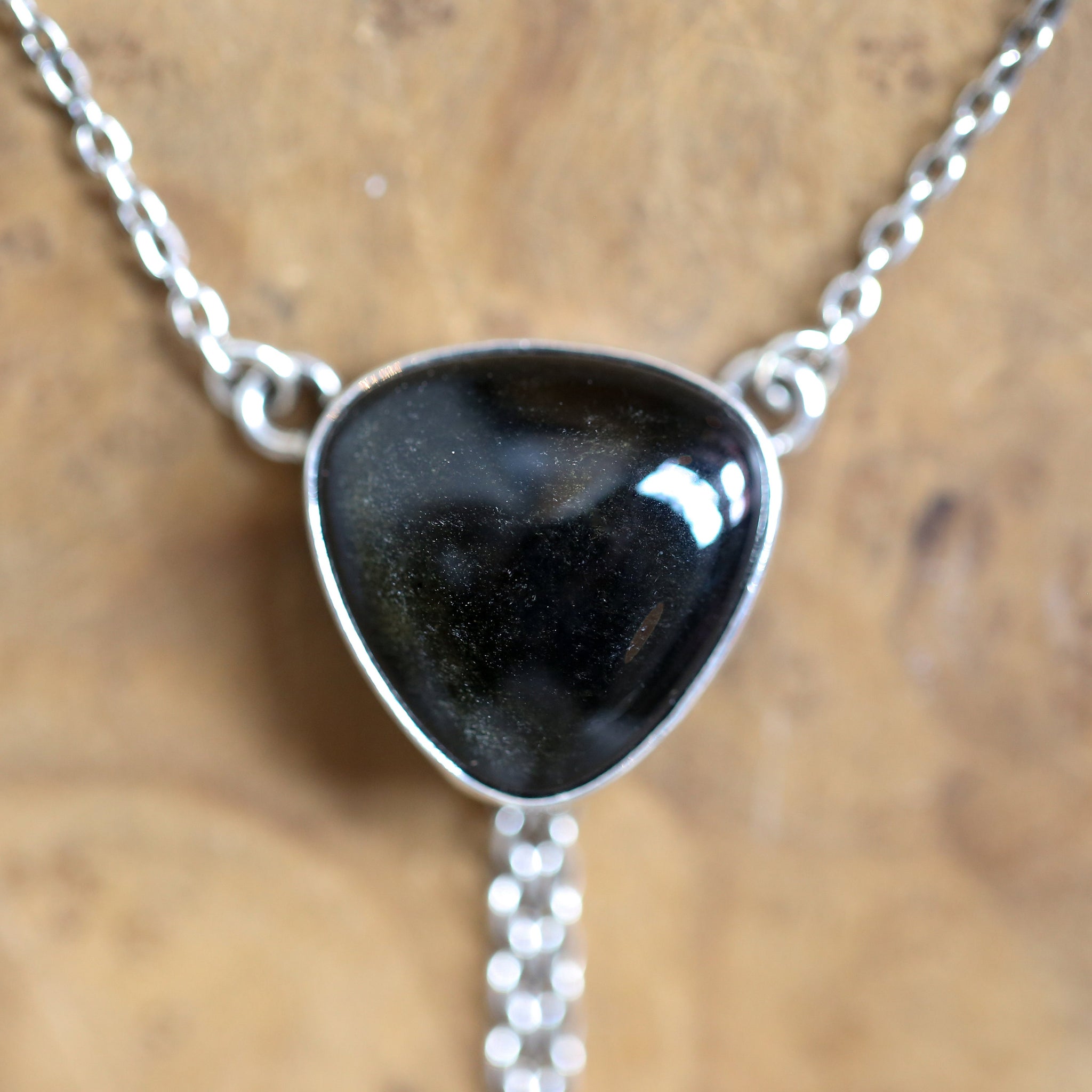 • Golden Obsidian Necklace - Obsidian Bolo - Obsidian Lariat - Sterling Silver