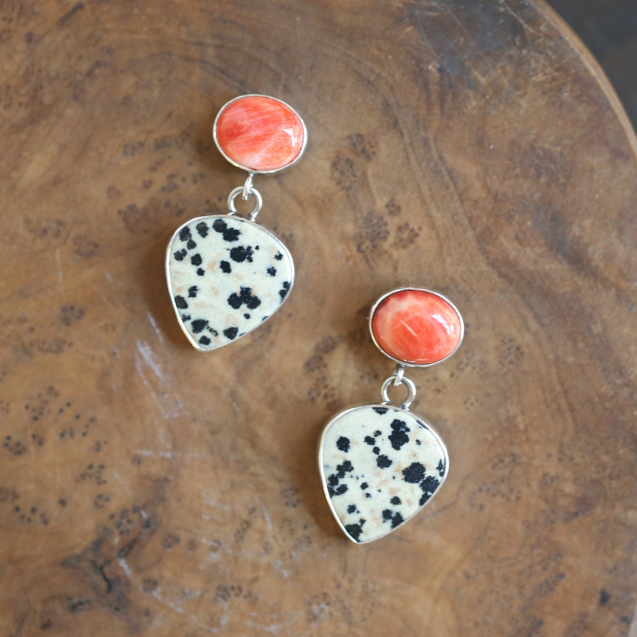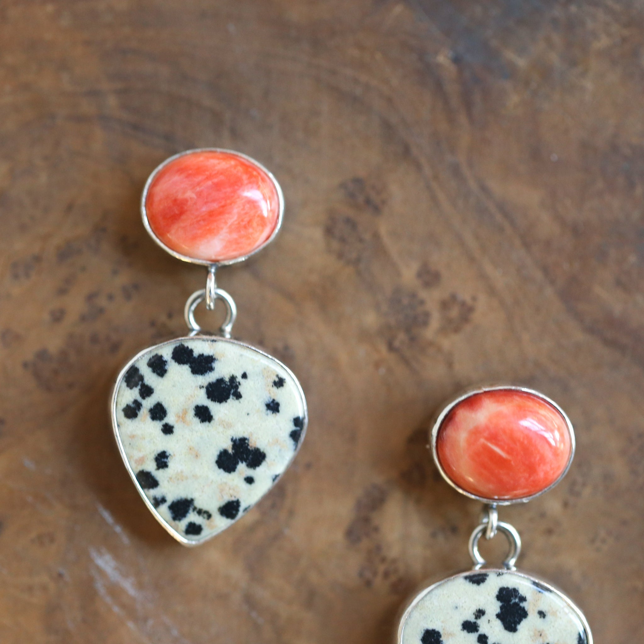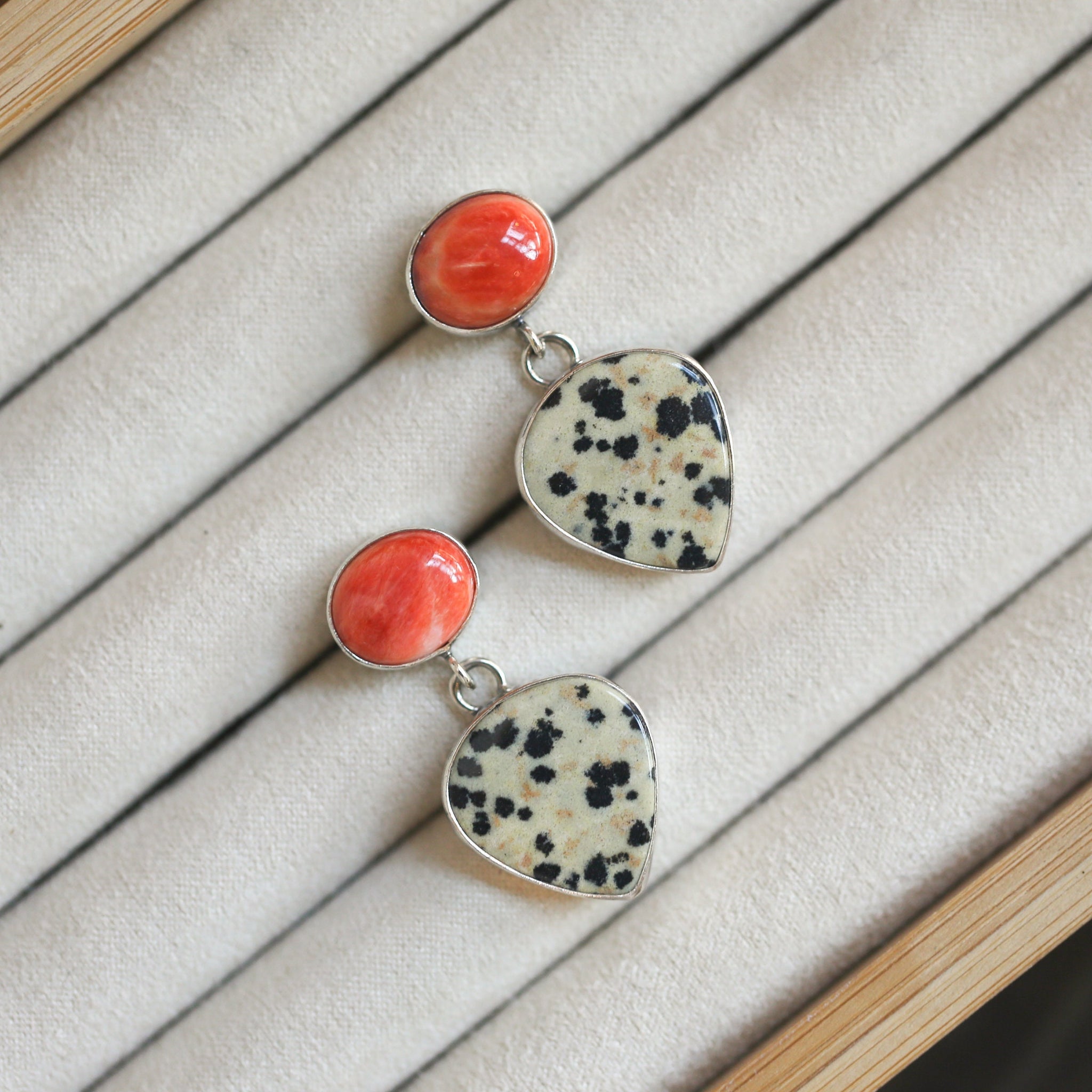 Spiny Oyster Drop Earrings - Spiny Oyster Shell Dangles Earrings - Orange Red Drop Earrings