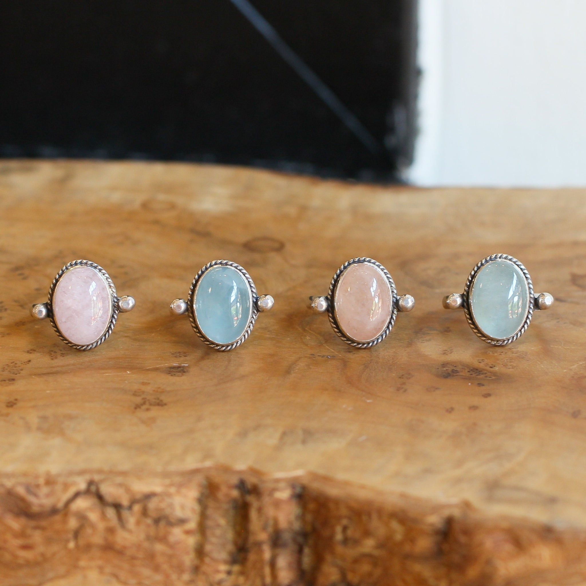 This is a custom ring for stone lovers. Choose your color of Morganite from the drop-down menu, and your size, and we will make our custom, morganite lasso ring. There are four subtly different colors to choose from in this listing - each will be highlighted in the photo as you choose. Choose your stone and your size from the drop-down.