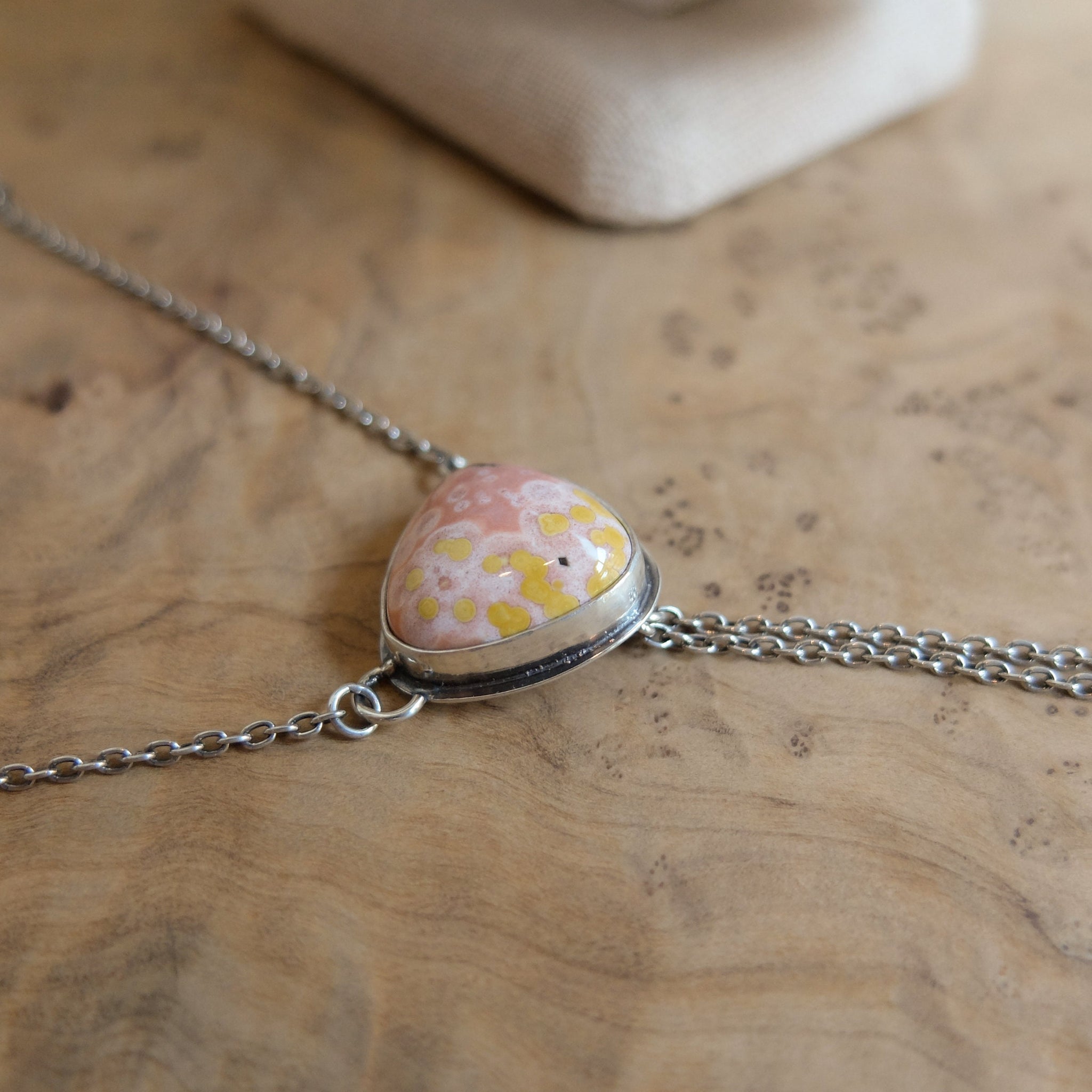 Look closely as you choose between these unique and stunning, natural, Ocean Jasper Bolo Necklaces. They're all Ready to Ship. You will receive the exact Ocean Jasper Bolo Necklace in the photos. Choose between Mock Bolo 1, 2 or 3, and your choice will be highlighted in the photo as you choose. It's ready to ship so we will ship out right away.