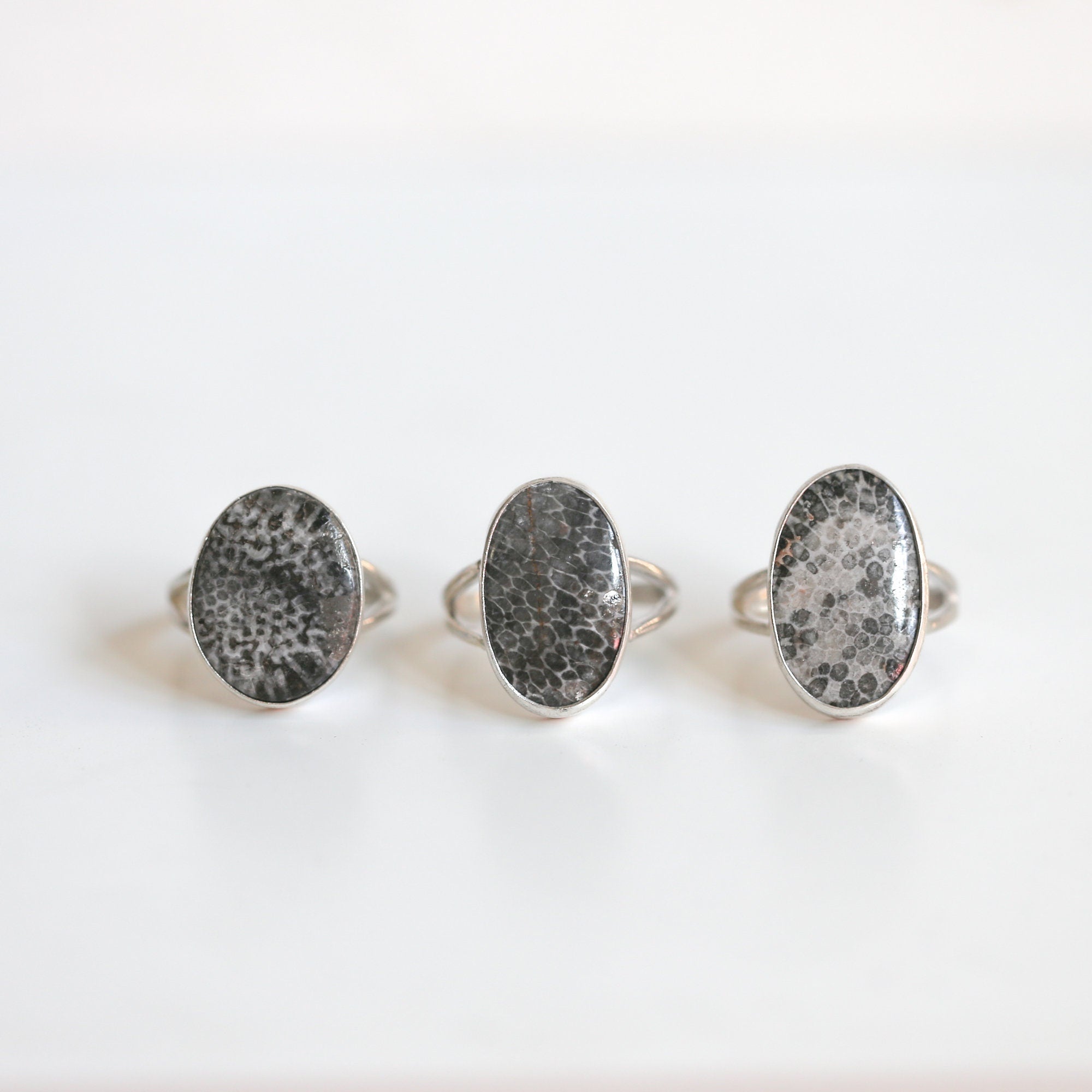 Choose your Ring - This listing is for ONE Stunning, Black Fossilized Coral and Sterling Silver Ring from the photos. Choose your size from the drop-down we will send the ring that is highlighted in the photos as you choose. We can modify slightly upwards from those sizes (up to 3/4 size US). Please make a note at checkout for slight size increases.
