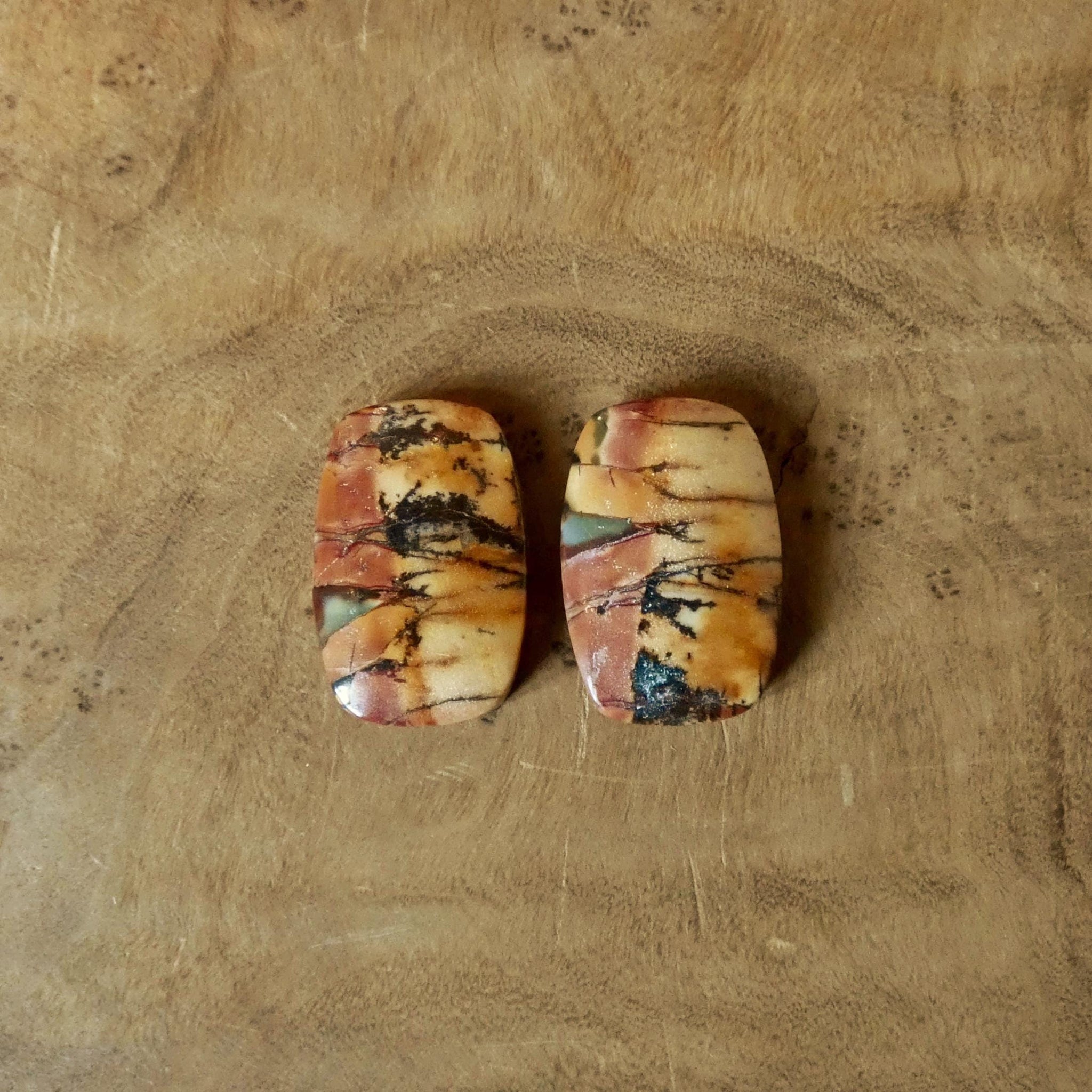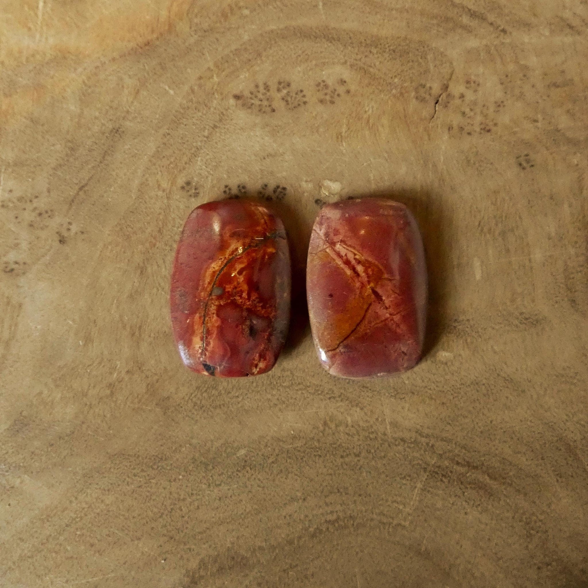 This is a Choose Your Stone listing - Choose your own gorgeous pair of Red Creek Jasper Cabochons - they will be highlighted in the photo as you choose. We will make your pair to order. (The pair in photos is pair "one" - while they last.)