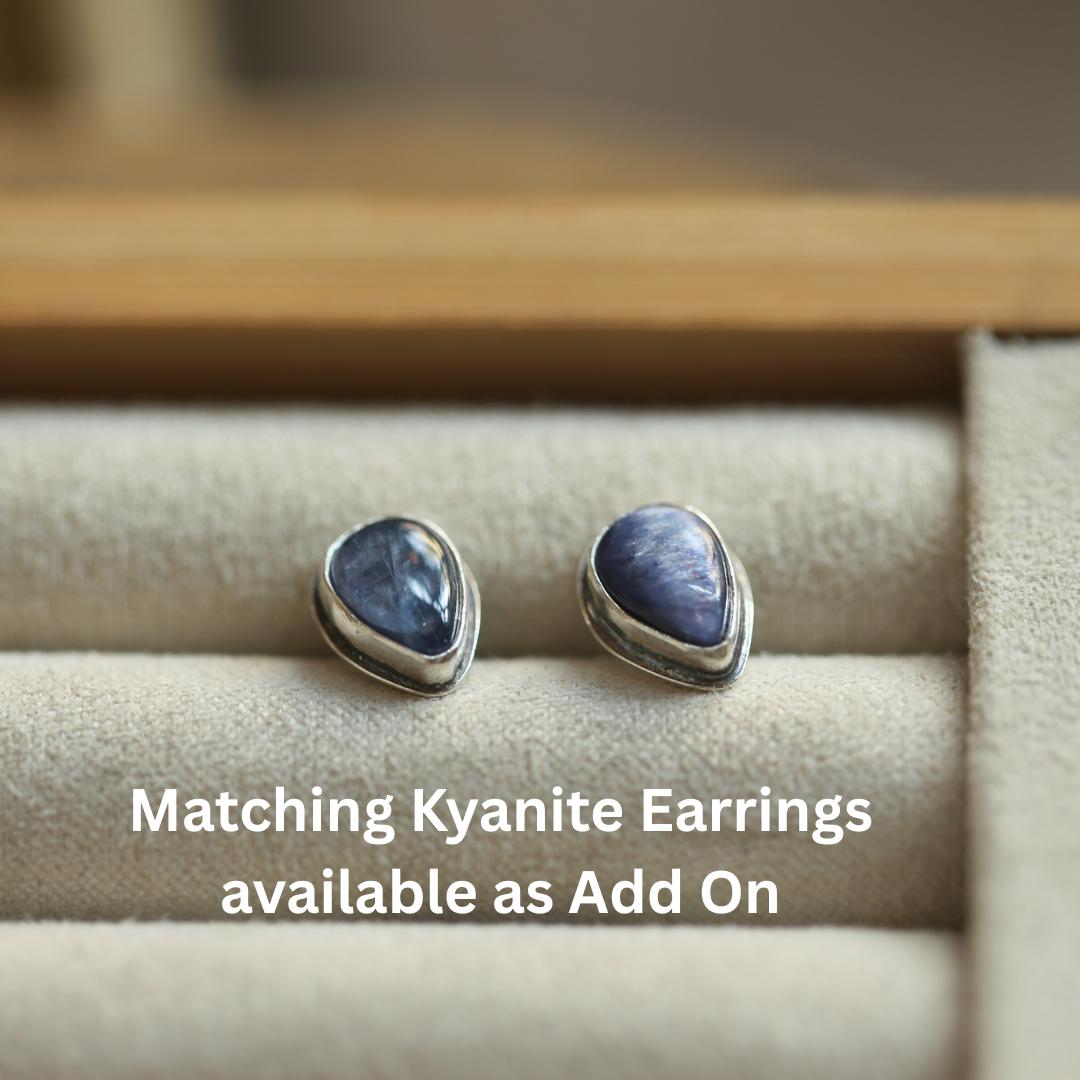 We've set 3, Natural, Blue Kyanite Jade pear shaped cabochons as a "star flower" in .925 Sterling Silver with an inclusive .925 Sterling Silver Chain. (Chain included.) The blue kyanite is natural and stunning in smooth, oxidized, sanded and polished sterling silver for ultimate comfort. A unique and timeless piece! All traditional silversmithing is done in my Baltimore, MD studio.