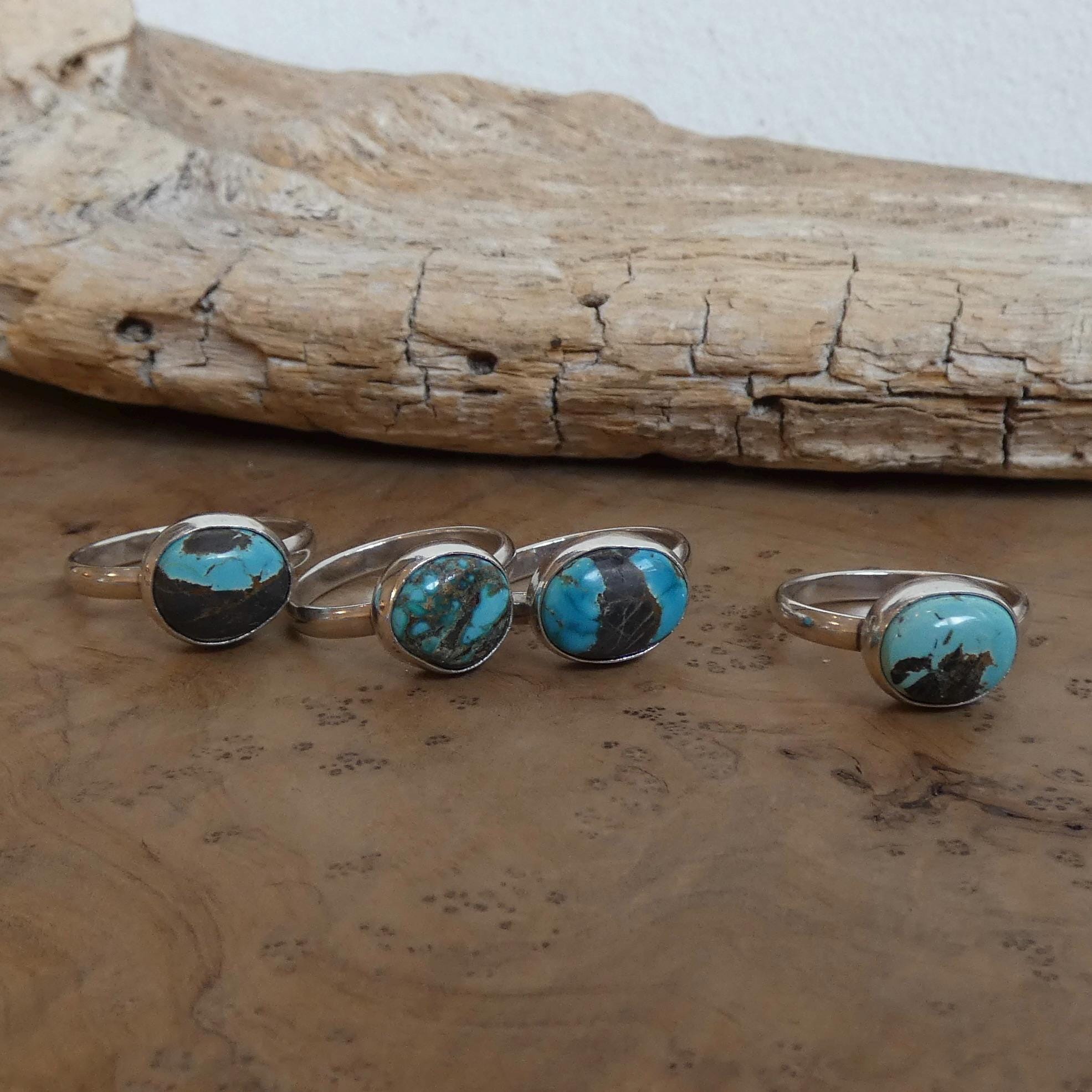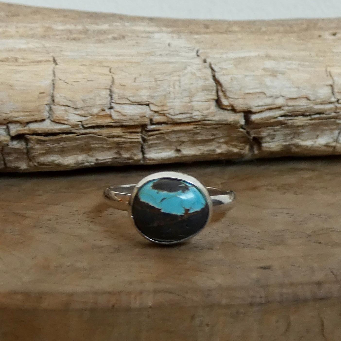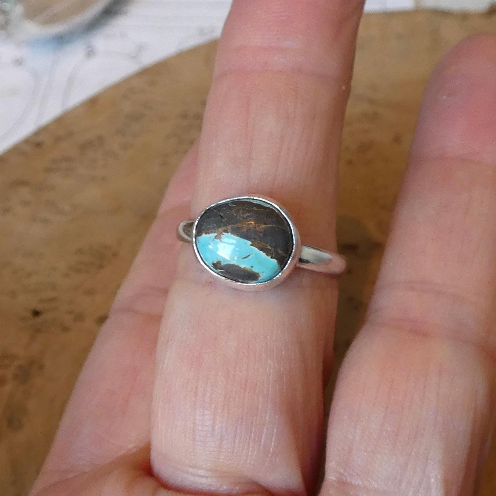 There are four, gorgeous, Black Jack Turquoise Rings here - each is ready to ship. Each ring features a 3.5 CT Turquoise cabochon set in .925 sterling silver - oxidized and burnished. Simple, elegant and perfect. This lovely little ring is created using traditional silversmithing techniques in my Baltimore, MD studio. All metal is .925 Sterling Silver.