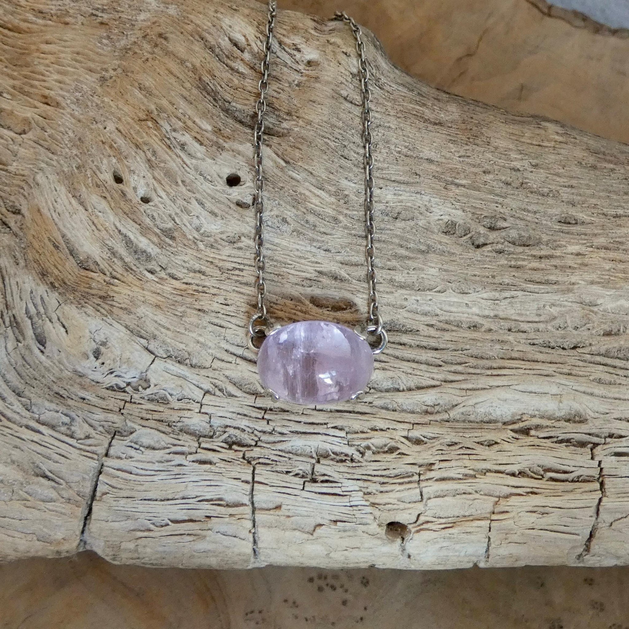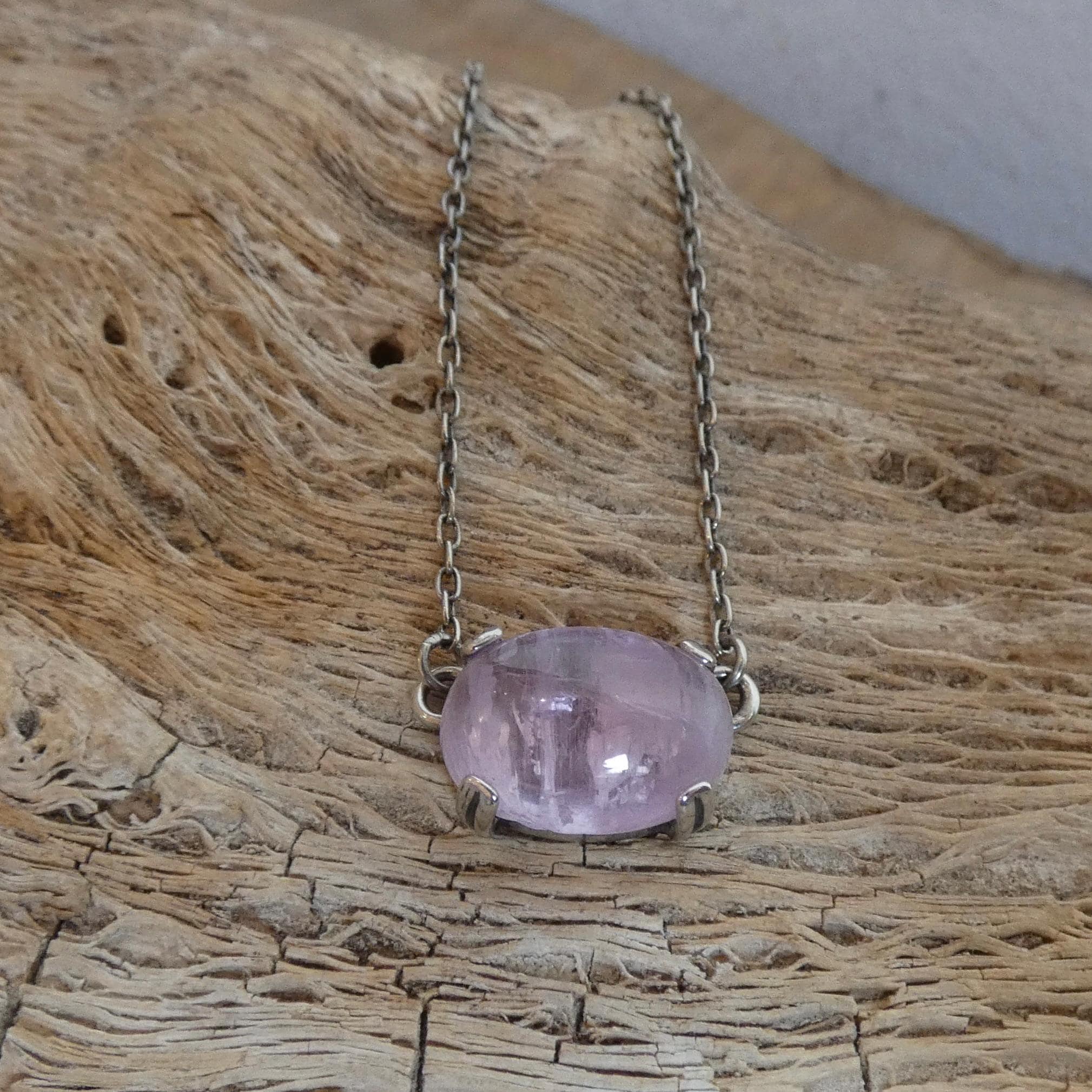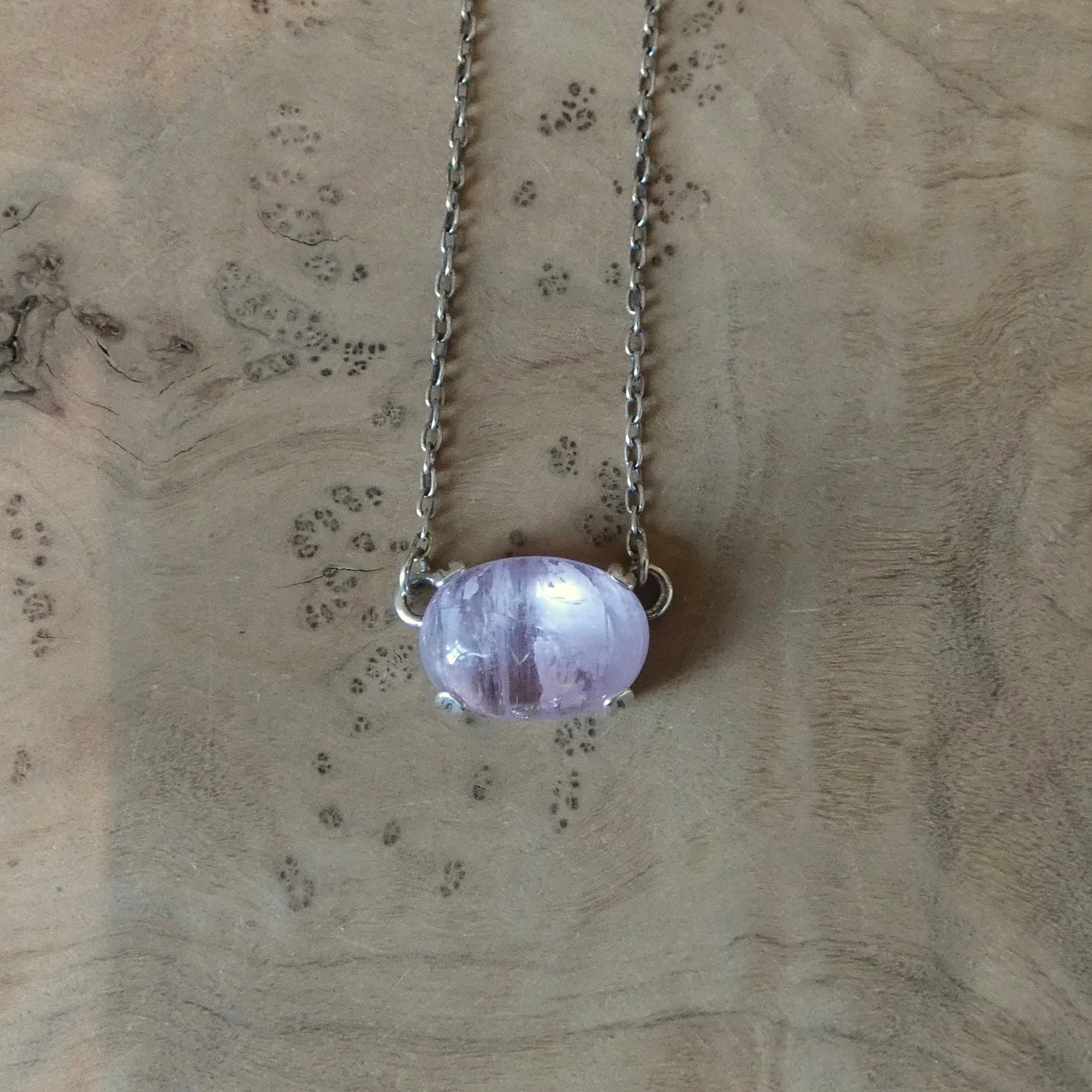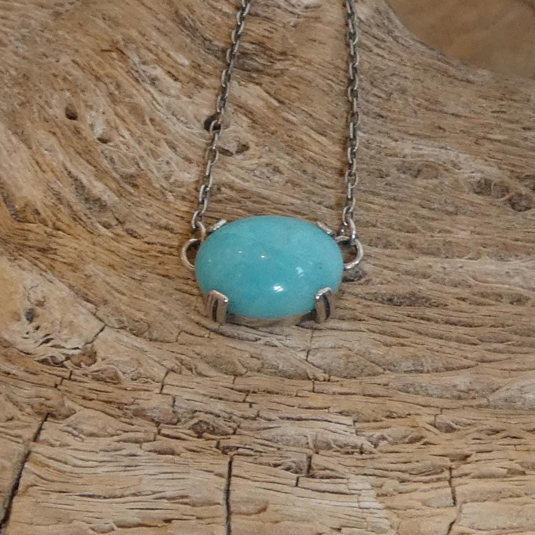 Choose one necklace from FOUR stones in this new, graceful prong pendant. Choose from Deep Green Nephrite Jade, Turquoise Blue Amazonite, Soft Purple Kunzite and natural sparkly Sunstone focal stones. All are beautiful specimens and it will be difficult to choose only one in this graceful and beautiful new prong pendant. This design features a gorgeous east-west oval stone at its centerpiece - super easy to wear - dress it up or dress it down. All Silversmithing and stone setting is done in my Baltimore, MD studio.