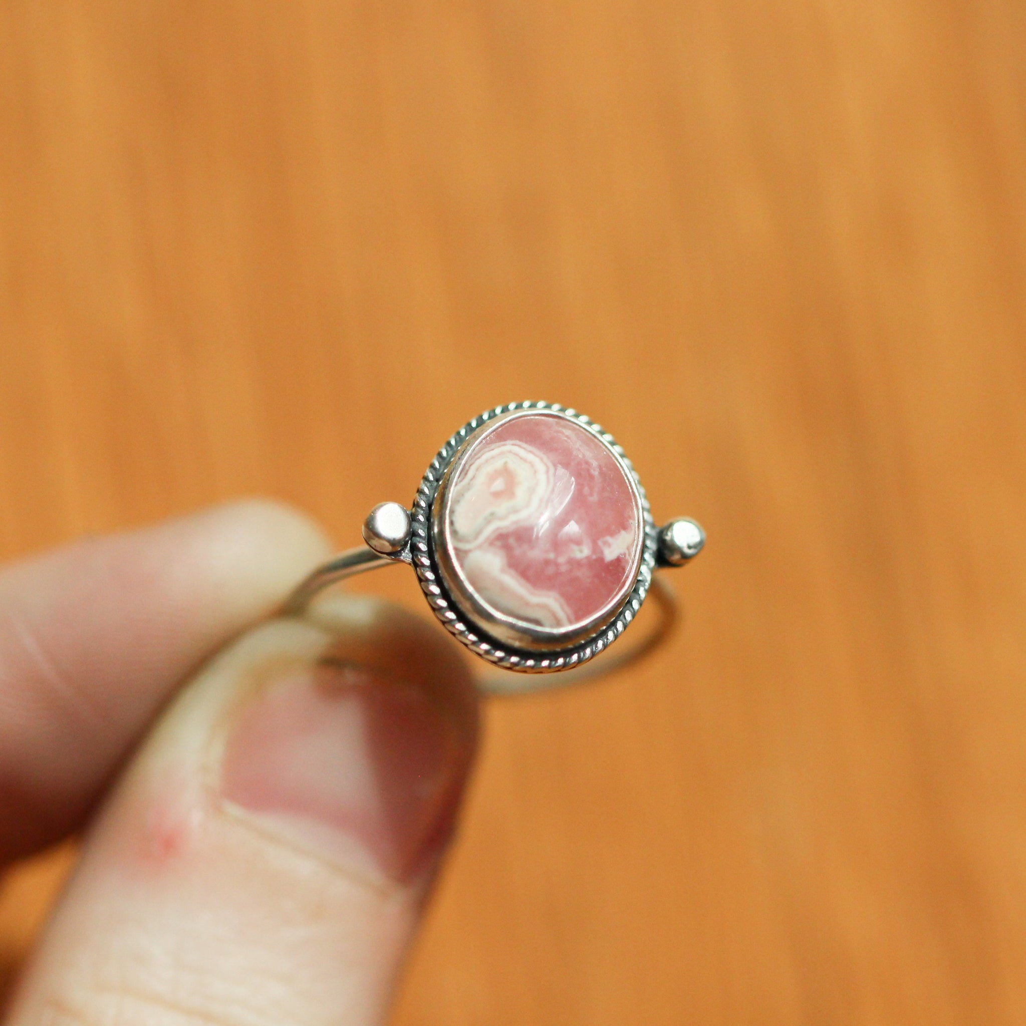 Materials: Stone, Silver, Rhodochrosite.