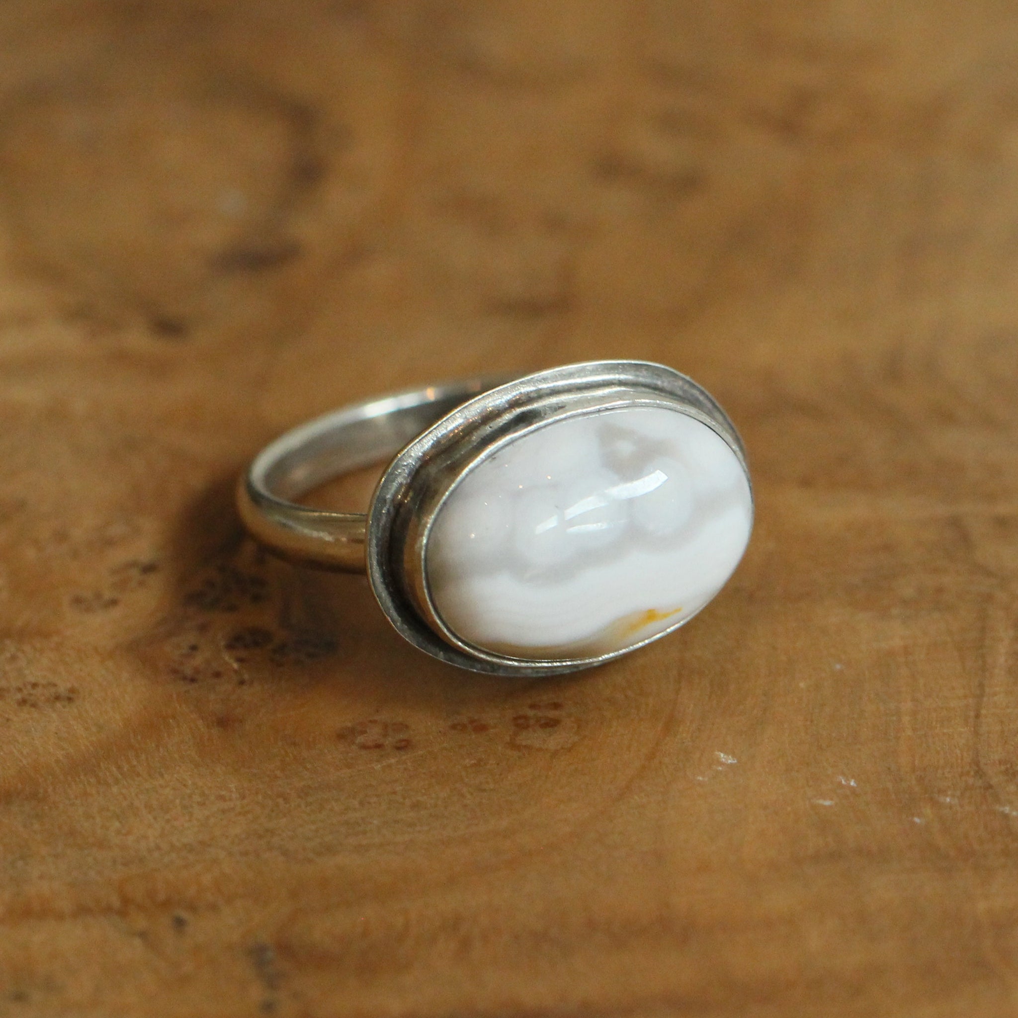 This is the perfect East-West Oval Ring and this Ocean Jasper is so special. The subtle and creamy color range with soft greens, peaches and beiges -- all unique and stunning. Choose your own Ocean Jasper stone from the drop-down - your choice will be highlighted in the photo. The 10X14mm Ocean Jasper stone rests perfectly in this east west oval configuration. Simple and perfect with just an edge of .925 Sterling Silver. Wear this Ocean Jasper Statement Ring alone or on a hand full of rings. All traditional Silversmithing is done in my Baltimore MD studio.