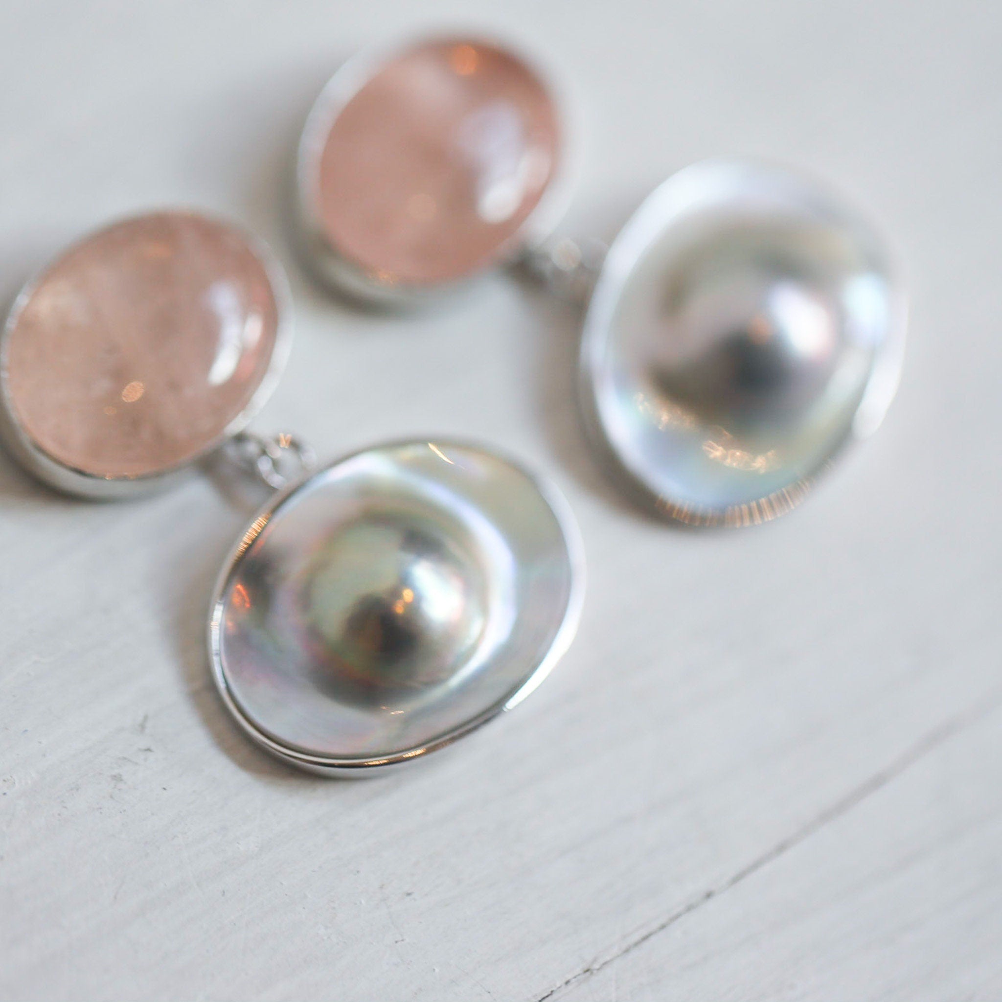 Ready to Ship - Morganite and Blister Pearl Earrings - Pearl Drop Earrings - Silversmith - OOAK