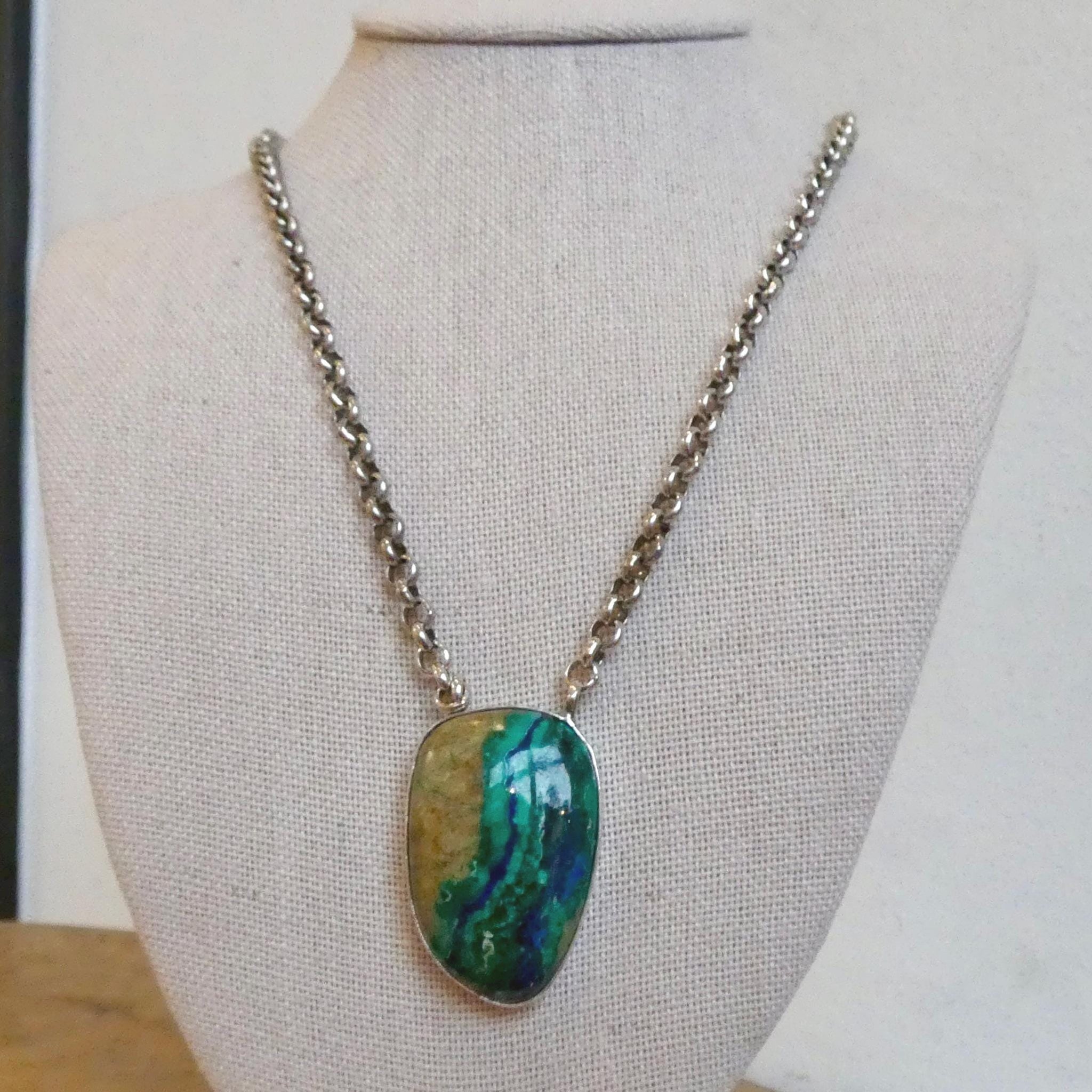 There are three, equally gorgeous and super high quality Azurite Malachite focal pendants with attached, super hefty sterling silver rolo chain to choose from in this listing - all are bezel set in .925 Sterling Silver and include the .925 Sterling Silver Rolo Chain. Choose your favorite ONE from the photos - you will receive the exact necklace that is highlighted in the photo as you choose. At LBJ, we believe the stones of the earth are the stars of the show in jewelry - this, gorgeous, minimalistic necklace is a perfect example of this. All traditional jewelry techniques - Baltimore, MD.
