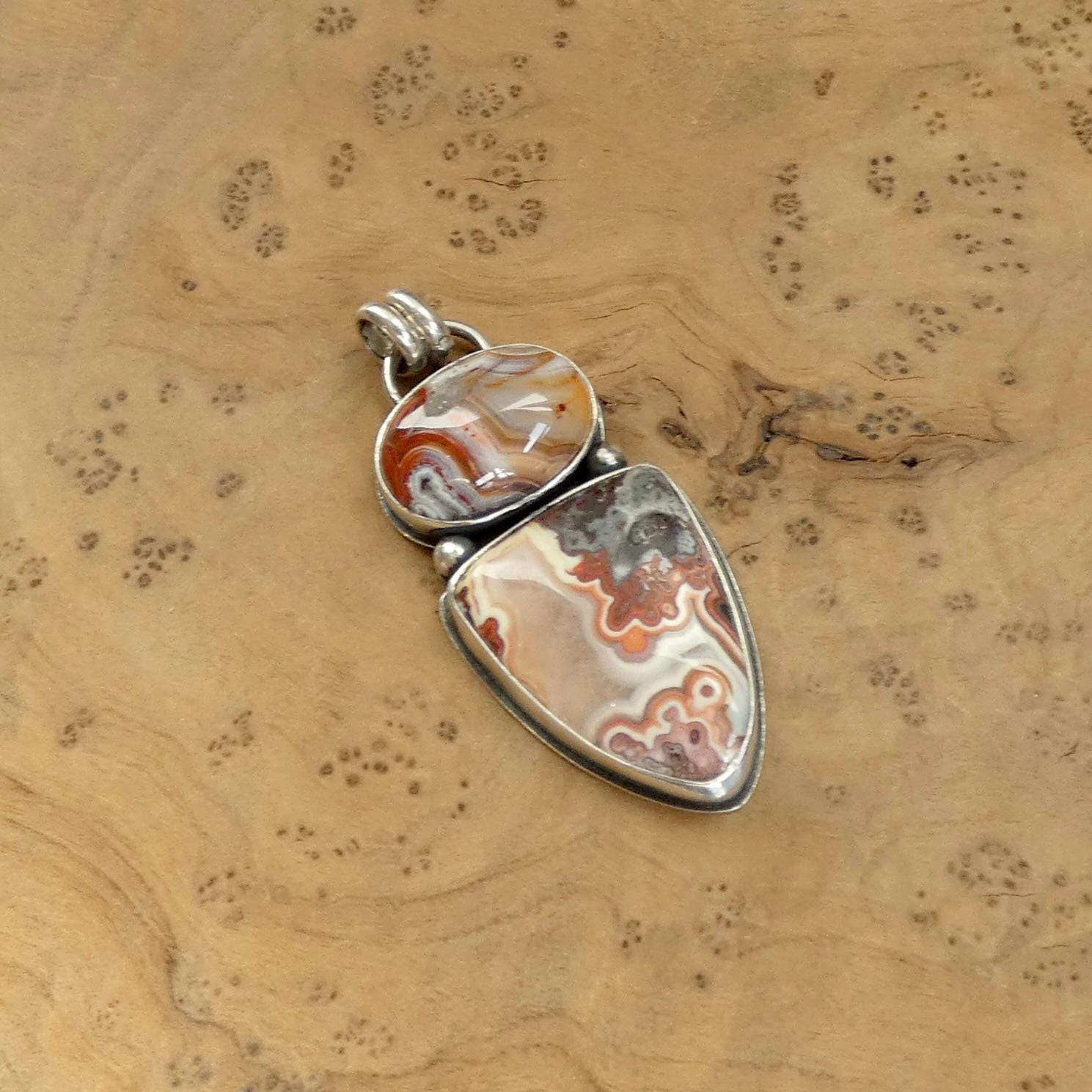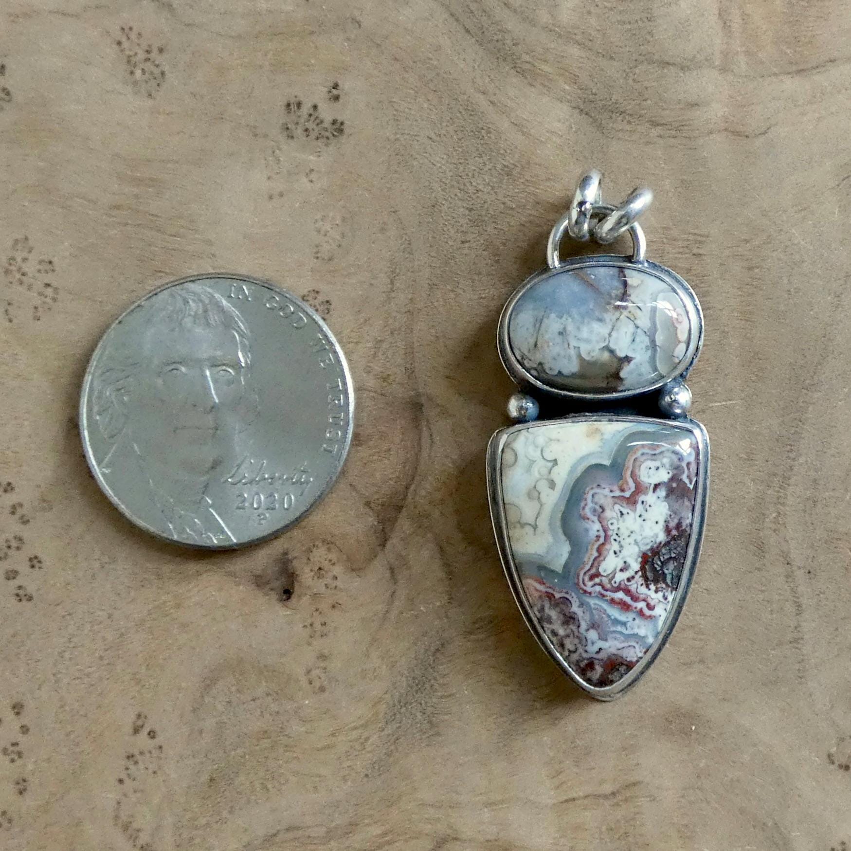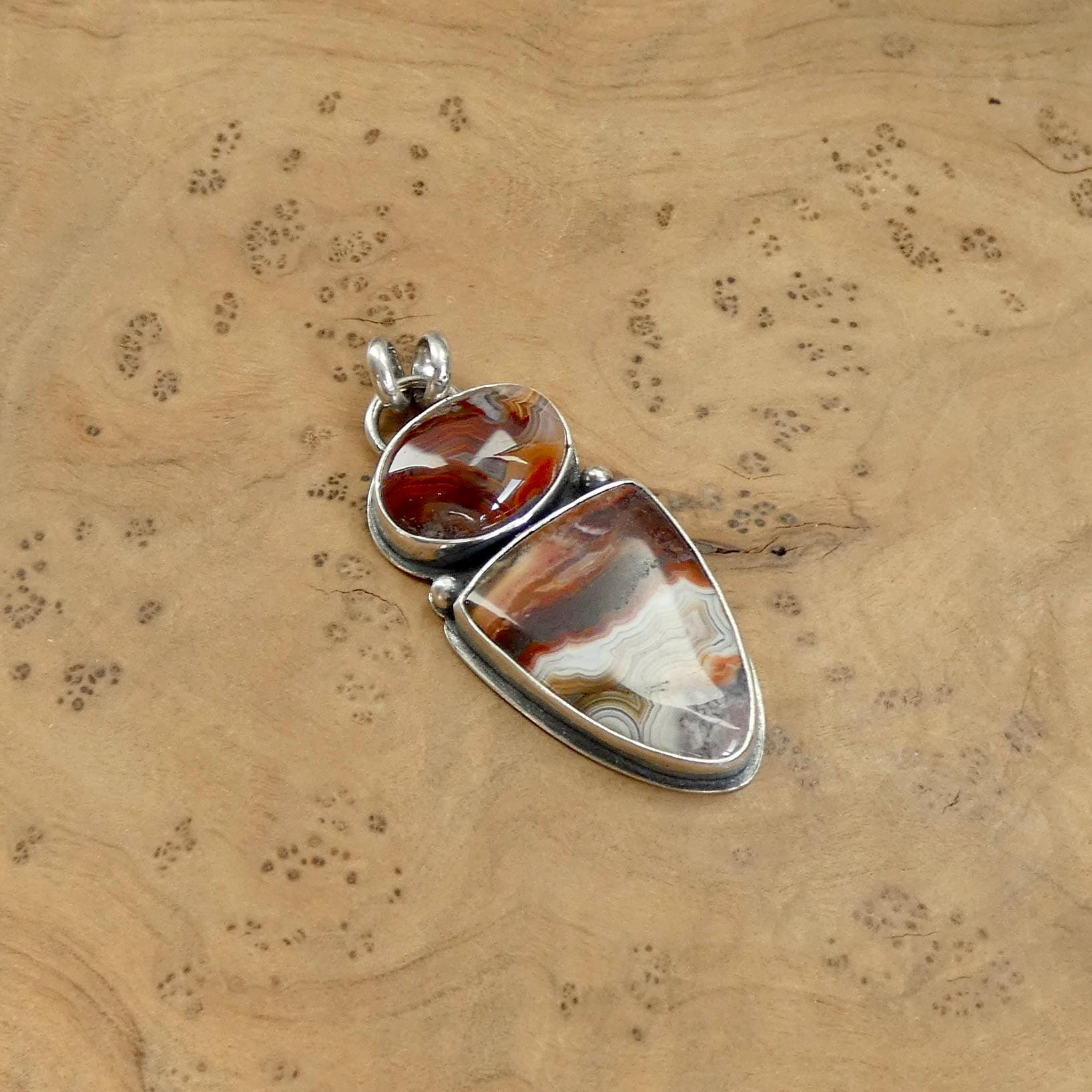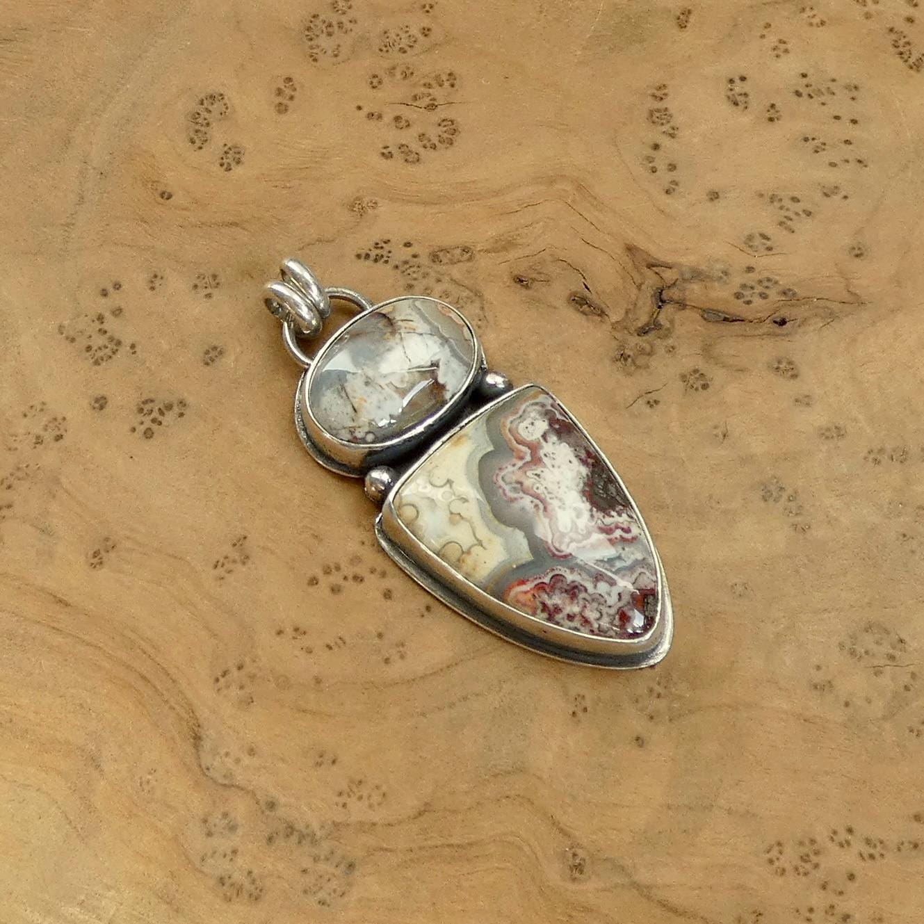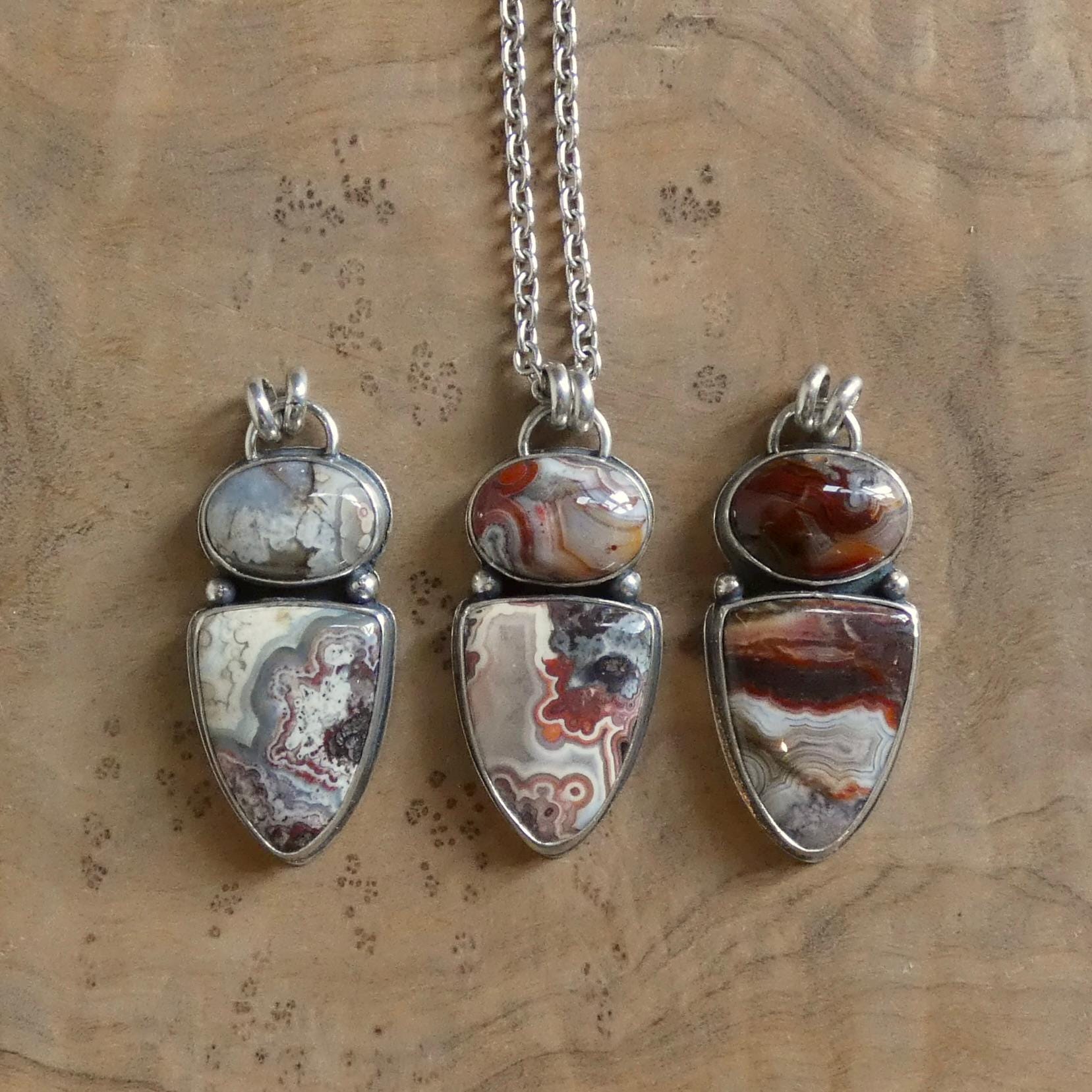 There are three absolutely gorgeous, two-stone crazy lace agate pendants in this listing - paired with our favorite, chunky .925 Sterling Silver Chain (optional). Choose your (1) pendant - it will be highlighted in the photo as you choose. They are all ready-to-ship.