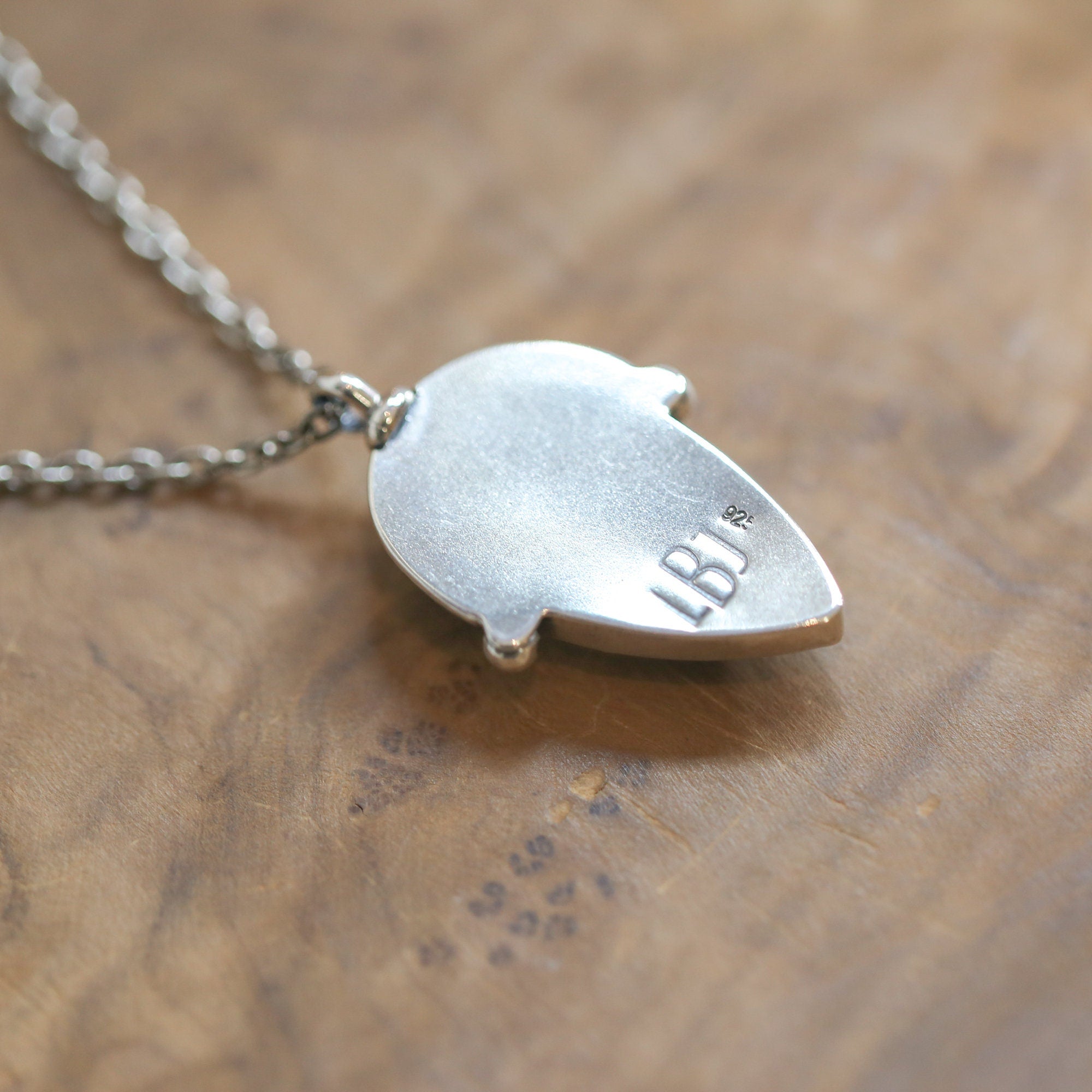 Beautiful, deep blue, AAA Lapis Lazuli is featured in our Lapis Lazuli Pendant. It's a perfect power pendant. We've used .925 Sterling Silver to create this unique, pear-shaped Lapis Lazuli Pendant. Enhanced with Sterling Silver extruded wire and bead accents - this new, LBJ Lapis Lazuli Pendant is modern and classic at the same time and will be a favorite for dressy or casual elegance. Stunning, Pear Shaped Lapis Cabochon accented and set in sterling silver is timeless! A traditional but boho lapis lazuli necklace style you will always turn to!