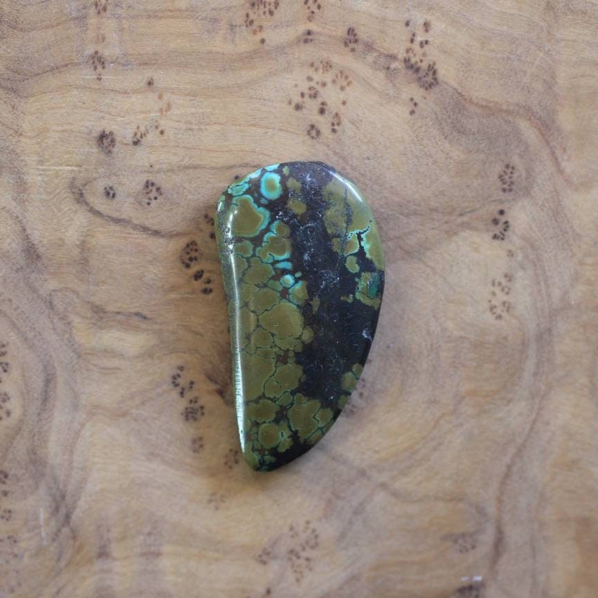A stunning piece of Hubei, dragonskin patterned turquoise is highlighted in this traditional Turquoise Cuff Bracelet. Perfect to fall in love with as a centerpiece of your collection. All Traditional Silversmithing is done in my Baltimore, MD studio.