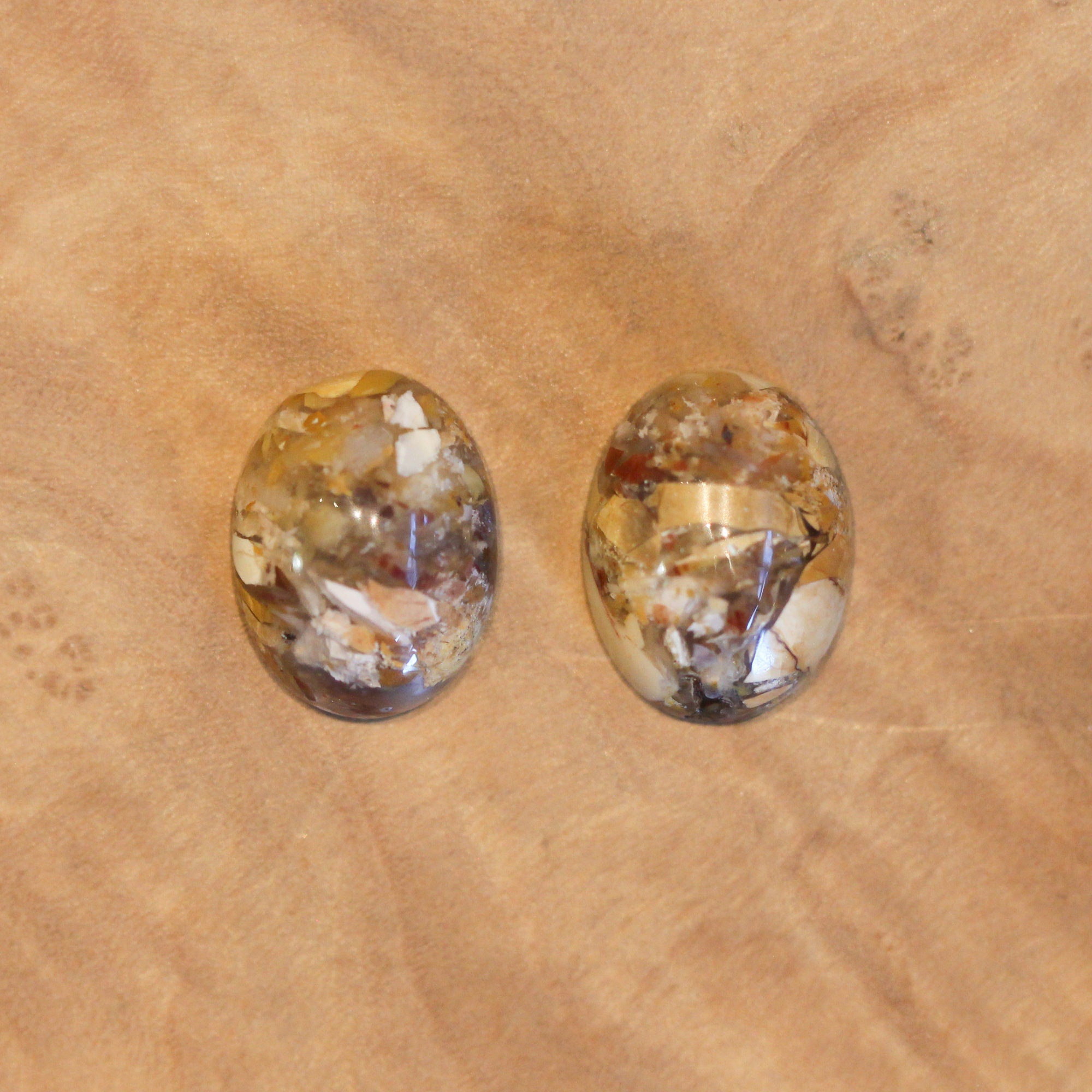 Cufflinks or Cuff Links? Either way, we have opted for .925 Sterling Silver cuff link hardware and a minimal design to highlight these wonderful, natural Brecciated Mookaite Jasper. These Silversmithed cufflinks offer the wearer not only a warm and earthy pallet but also an interesting focal point, as these stones are very unusual and emerge like this only in Australia. Choose your own pair and we will make to order.