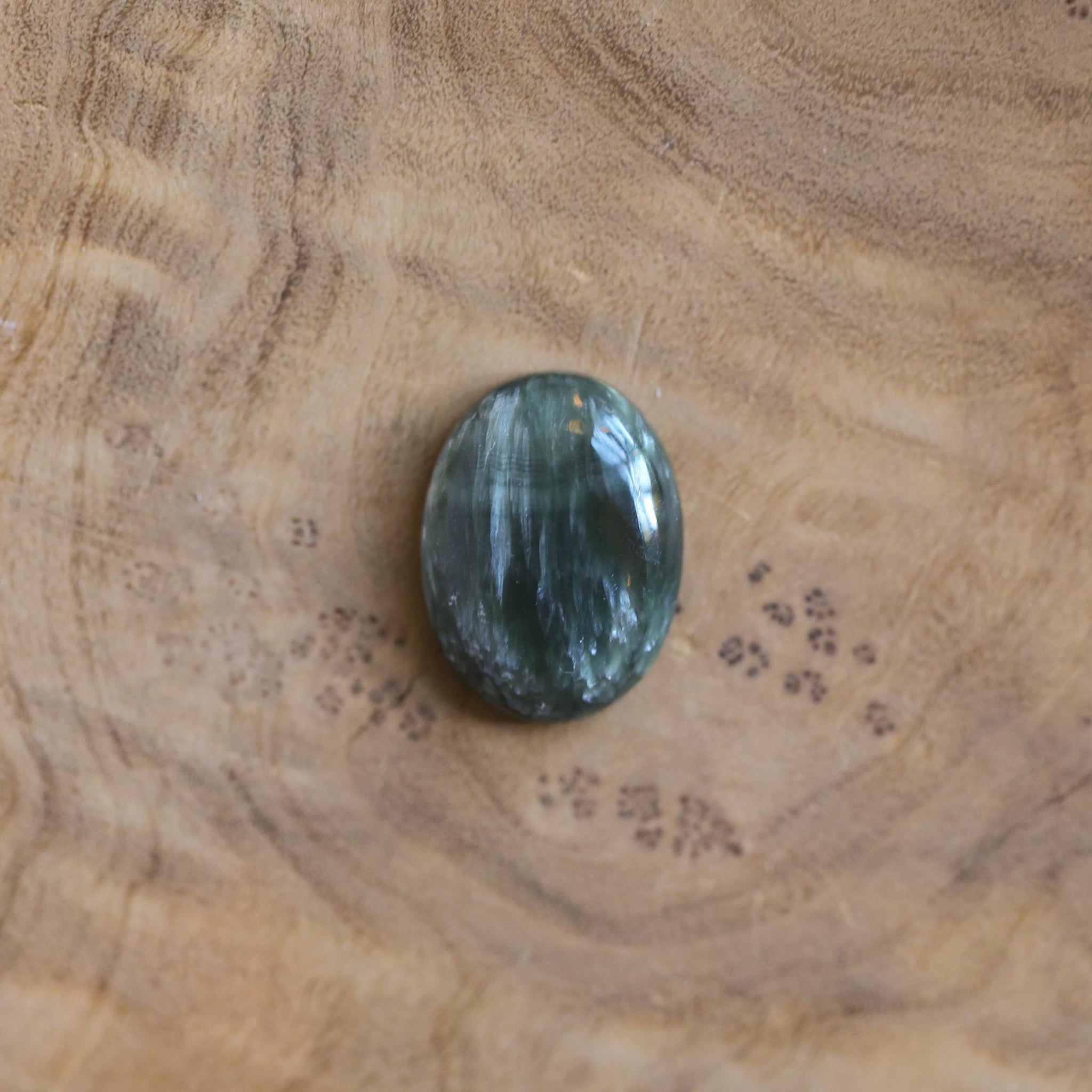 This earthy, green Seraphinite is truly spectacular. Choose your stone from the drop-down, your stone choice will be highlighted in the photo.