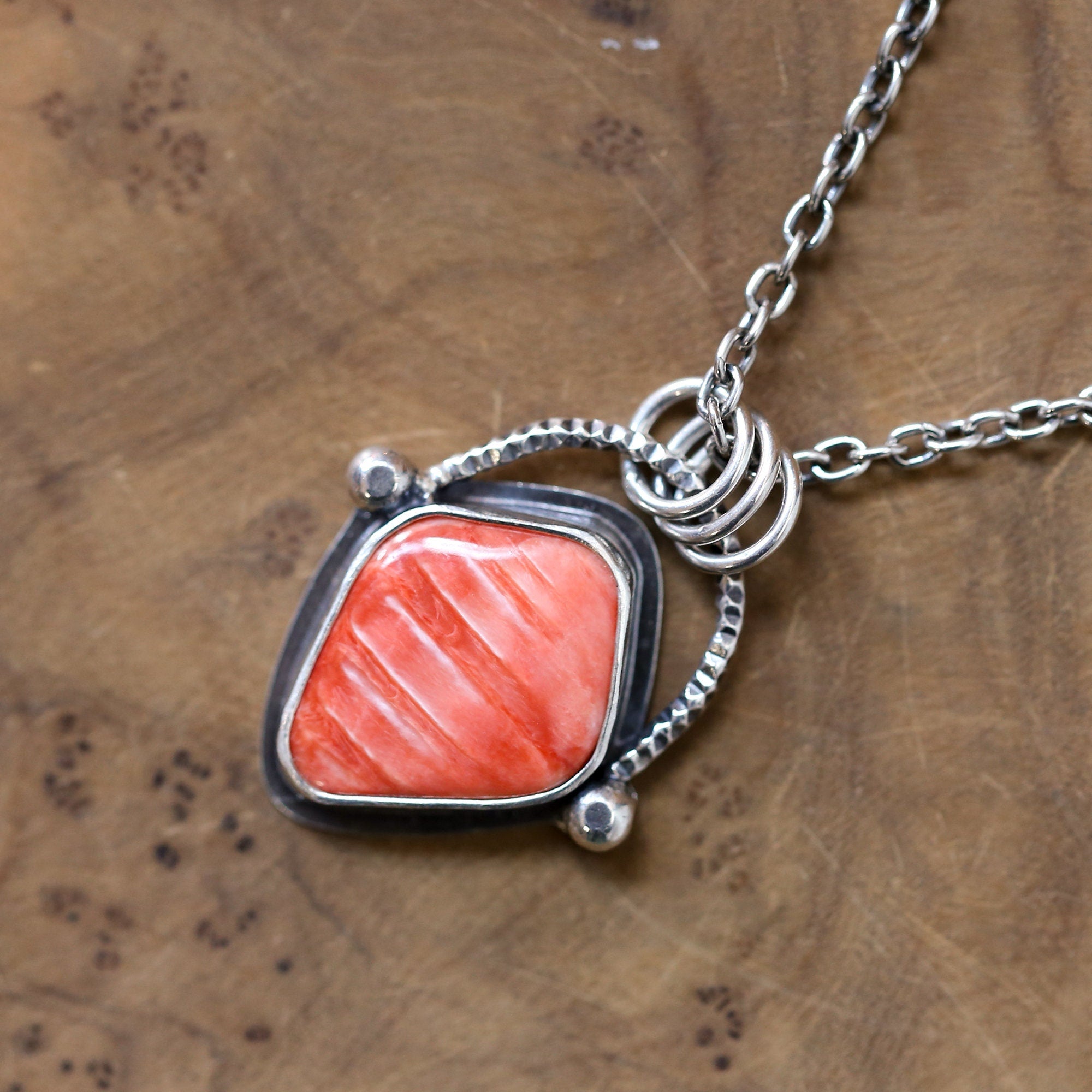 You get a truly unique LBJ design with this Chilli Pepper Red, Spiny Oyster "Basket" Pendant. This is fantastic Spiny Oyster. This piece is great for every day - dainty, with the perfect pop of Chili Red Spiny Oyster and an exotic and interesting feel. You will wear this all the time.