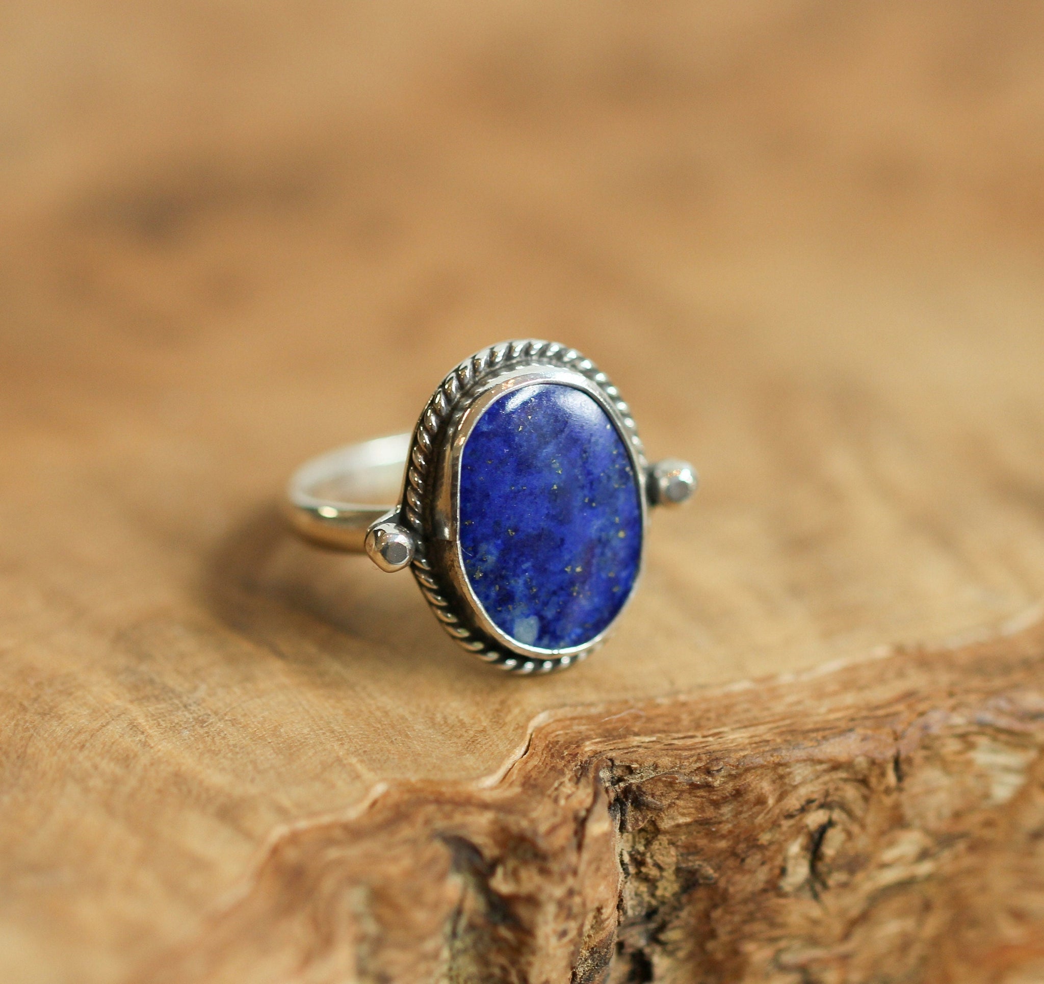 We are very excited about the look and feel of our new Lapis Lazuli Lasso Ring! This Sterling Silver Boho Lapis Lazuli Ring looks and feels great - you won't want to take it off! Perfectly balanced with a healthy-sized 10X14mm Lapiz Lazuli stone, .925 Sterling silver accents and .925Sterling Silver half-round shank - super comfortable and easy to wear. The all sterling silver details of this ring are unique and truly set off the stone!