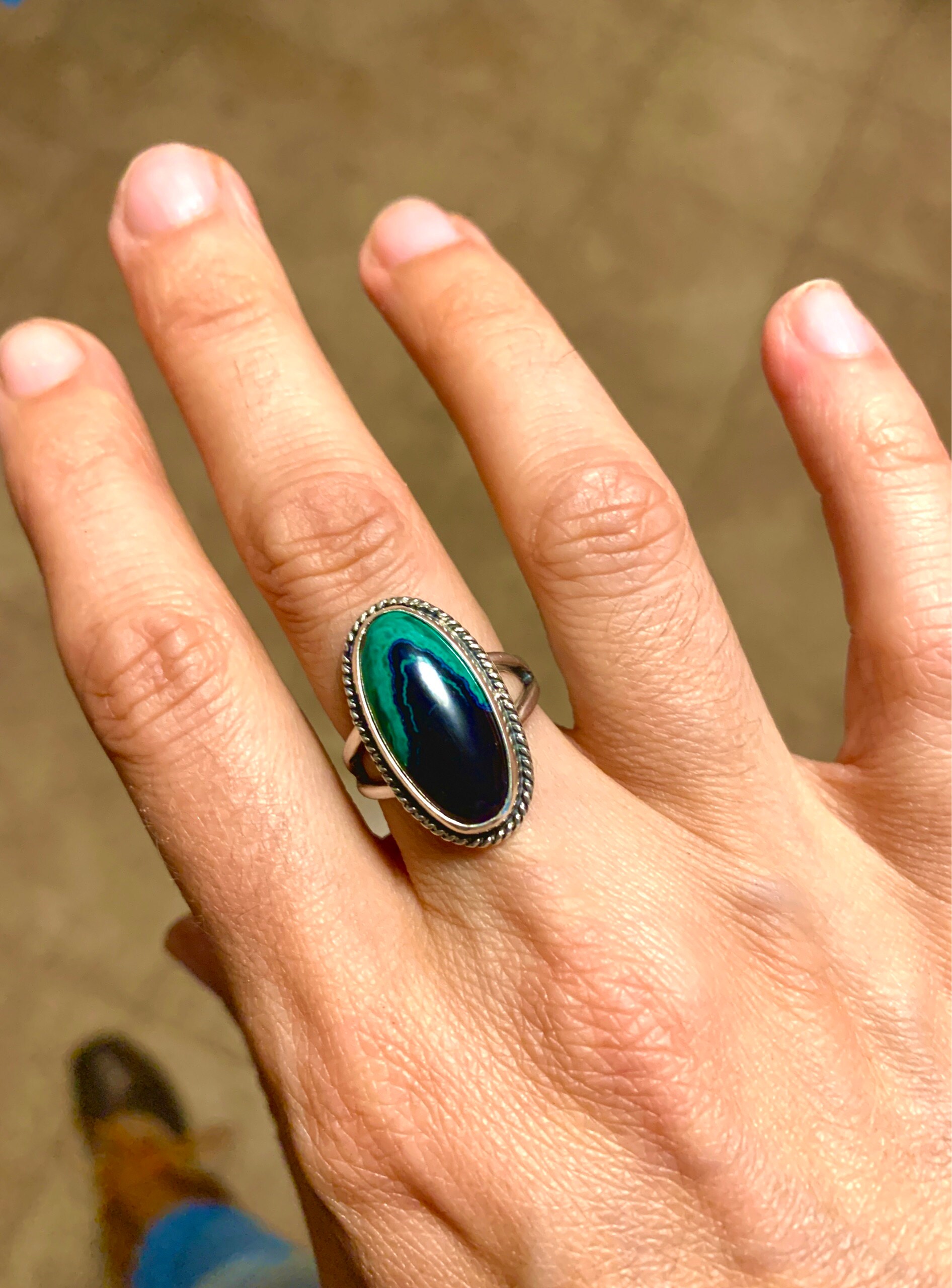 Materials: 925 sterling silver, azurite, Azurite Malachite, sterling silver.