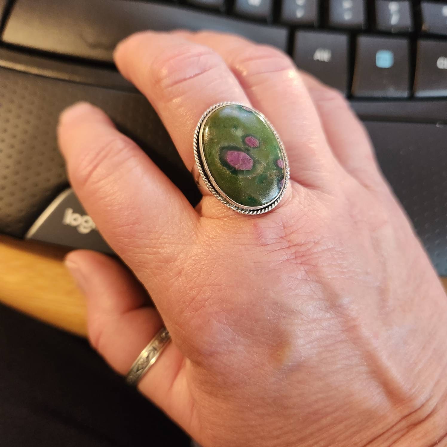 This listing is NOT for the finished ring in the photos. Choose your Ruby in Fuschite stone from the drop-down menu and we will craft a custom ring for you in the exact style of the original ring in the photos.