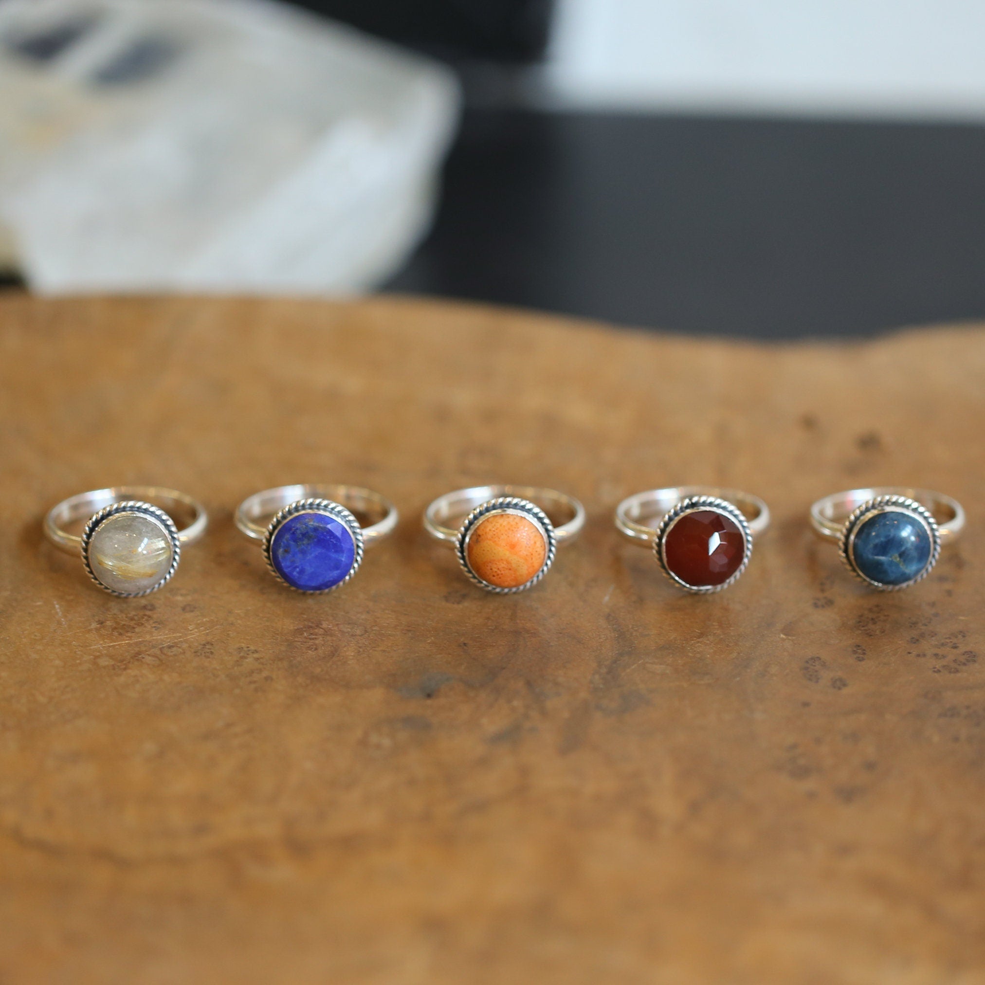 Everybody loves this Golden Rutilated Quartz ring. These Golden Rutilated Quartz stones are amazing. The strong golden rods or rutiles seam to float in the cloudy, natural quartz. Very unique! Our Pop Rock Ring lets the 10mm Golden Rutilated Quartz be the center of the show! Just right - easy to wear. Enhanced with a simple twist wire, this Golden Rutilated Quartz Ring stands alone or is a fantastic addition to a handful of rings. All .925 Sterling Silver. Choose your size in the drop-down below. All traditional silversmithing is done in our Baltimore Studio.