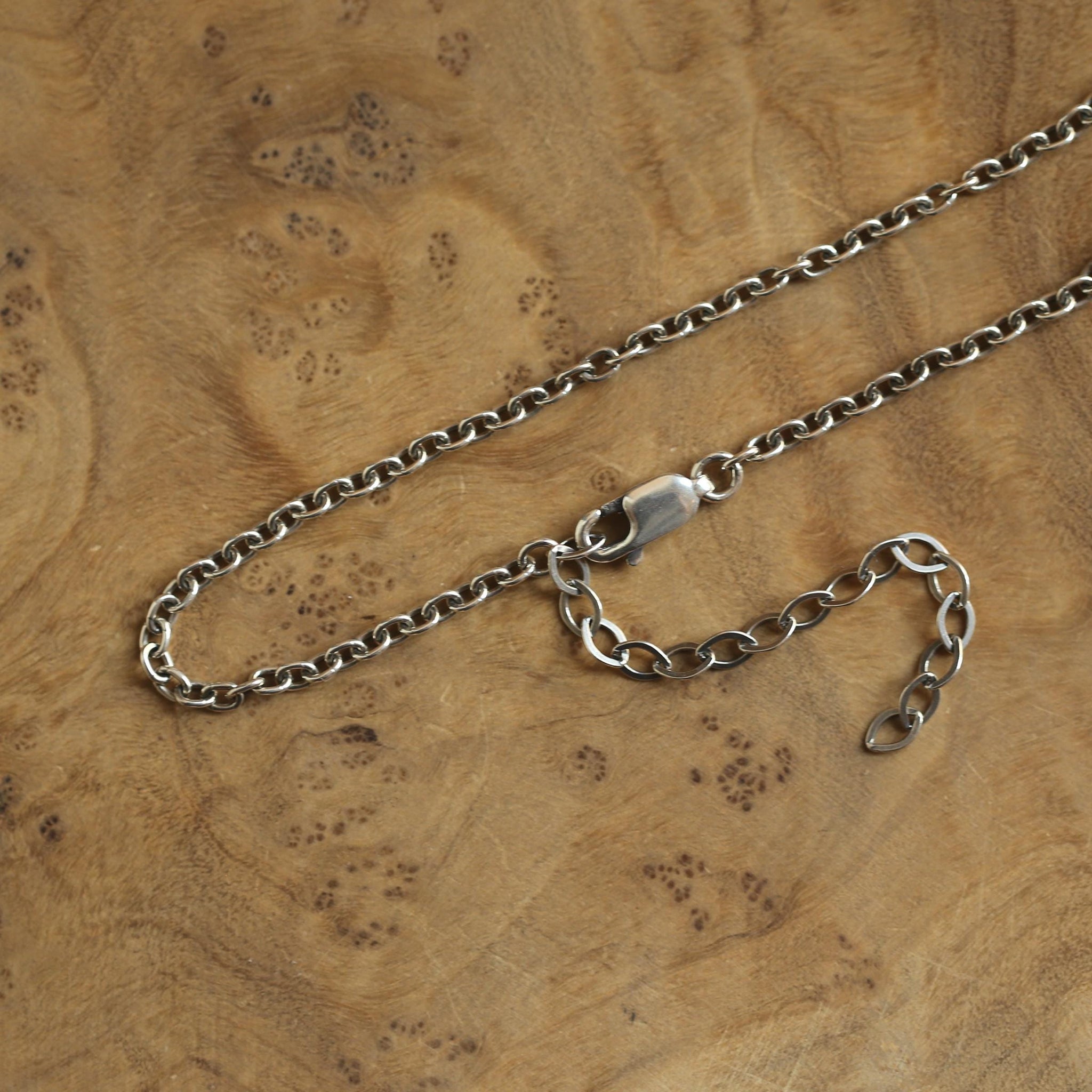 Dressy and casual at the same time, this turquoise necklace is so easy to wear you may forget you have it on. Set in oxidized and polished, .925 Sterling Silver setting from integrated .925 Sterling Silver chain (included).